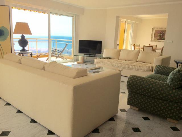 Dans residence de luxe avec piscine et Jacuzzy, au portes de la Principauté de Monaco, très bel appartement de 4 pièces avec grand salon donnant sur des terrasses vue panoramique mer, cuisine indépendant aménagé avec salle