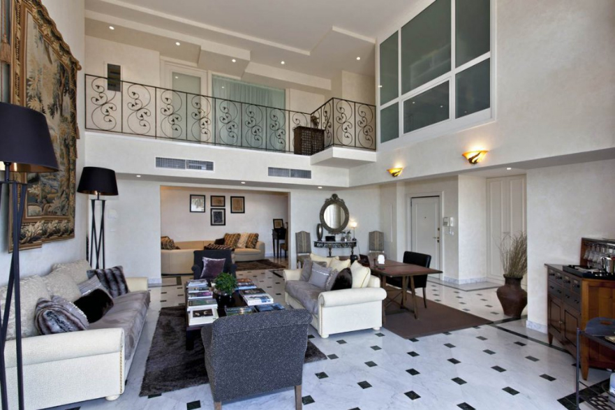 L'appartement est sur le hall d'entrée du rez-de-chaussée, spacieux et lumineux séjour de 45 mètres carrés. m., une salle à manger, cuisine, bureau et salle de bains. Au deuxième étage, il y a deux chambres, chacune avec salle de bains et dressing, une autre chambre, une troisième salle de bains avec un dressing et une troisième salle de bains.