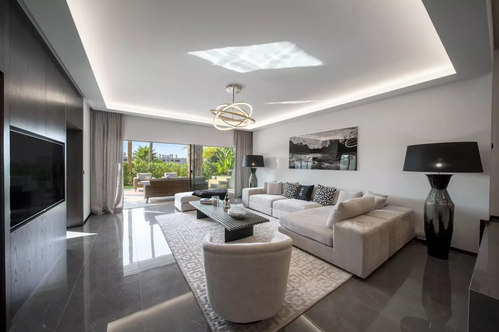 Dans une petite résidence neuve de standing de seulement 5 appartements, dans un endroit arboré et calme, à 5 minutes en voiture du centre ville de Cannes, superbe appartement 4 pièces d'environ 200 m² avec une très belle terrasse/jardin spacieux de 150 m² , situé au coeur du prestigieux quartier de La California, à l'adresse prisée Avenue du Roy Albert. Aux finitions intérieures de haute qualité s'ajoutent des services exclusifs tels qu'un centre de bien-être, un sauna, un hammam, un jacuzzi, une salle de sport, une piscine et un service de conciergerie.