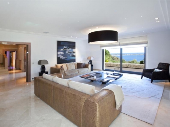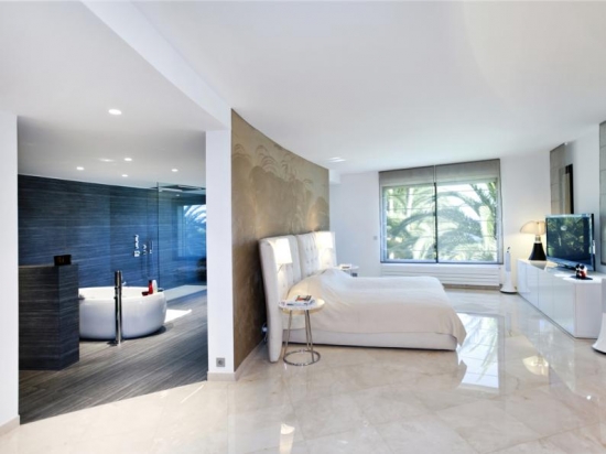 La villa se compose d'un salon avec une terrasse, un second salon avec accès au jardin, 6 chambres, 6 salles de bains et une cuisine professionnelle, une salle de sport et d'un sauna.
