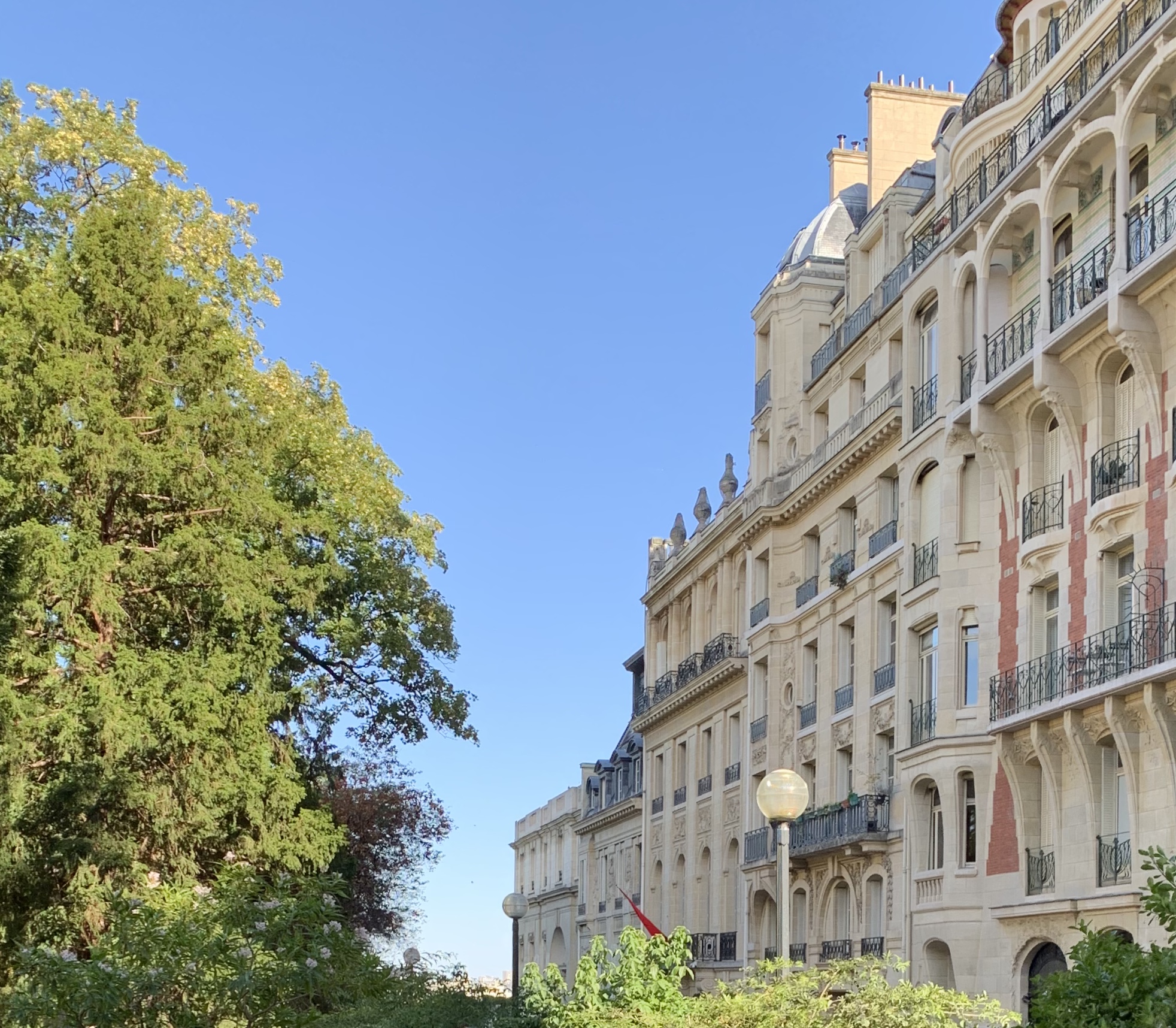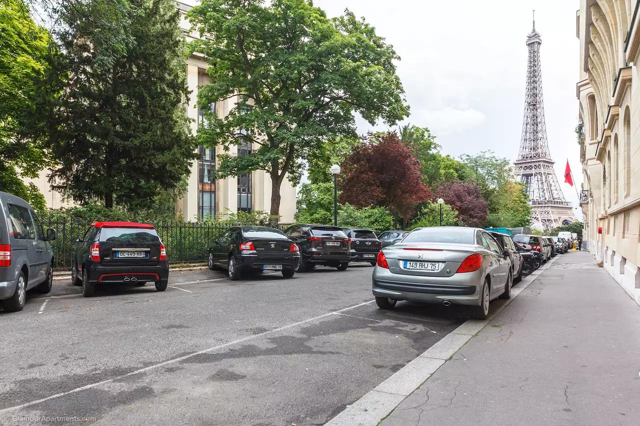 Le territoire de la maison est directement adjacent aux jardins du Trocadéro, qui se compose de deux parcs de style anglais. Il y a une grande aire de jeux dans le parc, plus proche de la tour Eiffel.