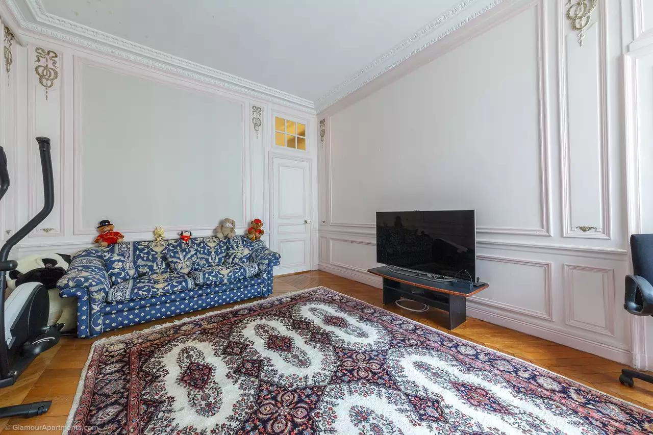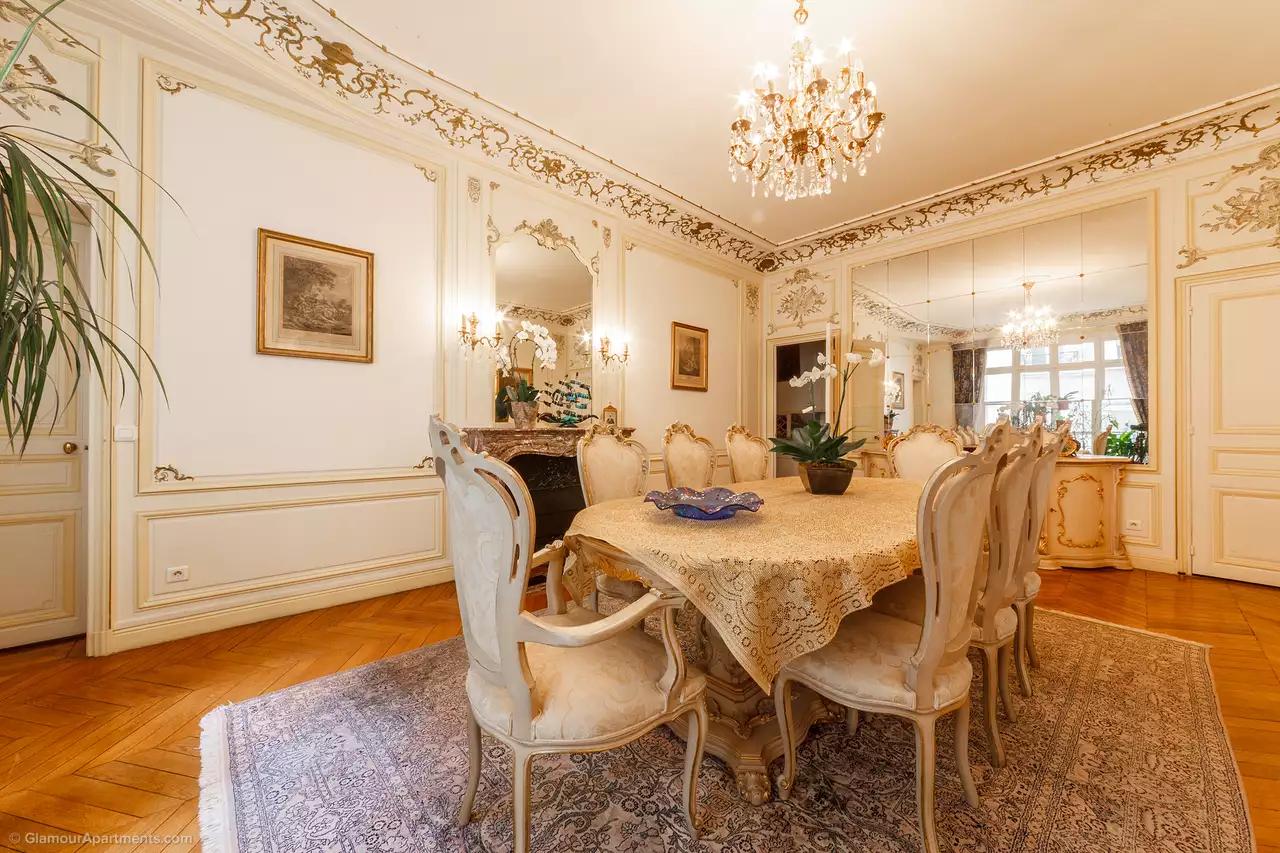 L'appartement dispose de 5 cheminées complètement identiques à Versailles. La moulure en stuc unique du 19ème siècle, créée spécialement pour le meilleur ami du général Bonaparte, a été préservée, ainsi que le parquet en blocs d'origine du 19ème siècle a été conservé et est en excellent état.