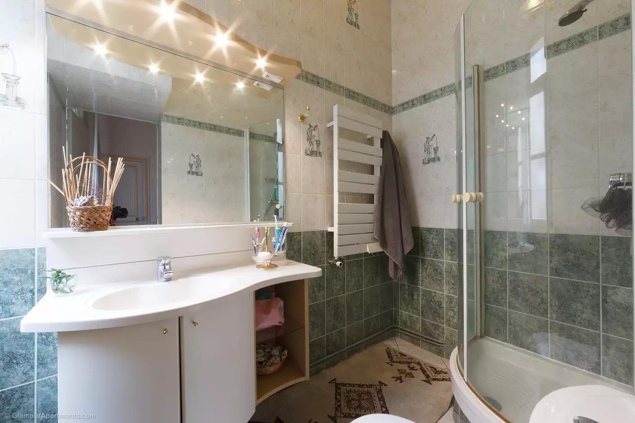 L'appartement comprend: une pièce indépendante au 7ème étage avec une cuisine et une douche, deux caves et deux parkings. Il y a deux ascenseurs modernes à l'entrée.