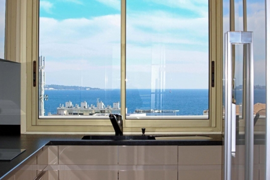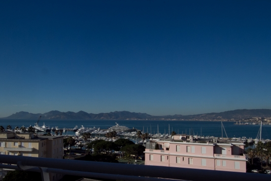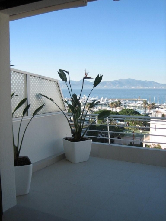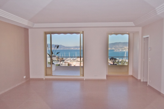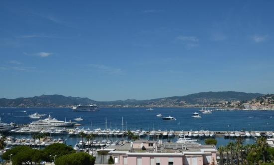 Magnifique appartement situé au dernier étage d'une prestigieuse communauté fermée sur la Croisette, face au port Canto avec vue panoramique sur la mer, Cannes, les îles Lerins et Cap d'Antibes.
