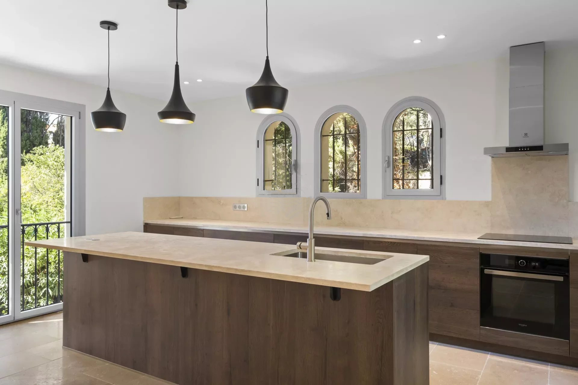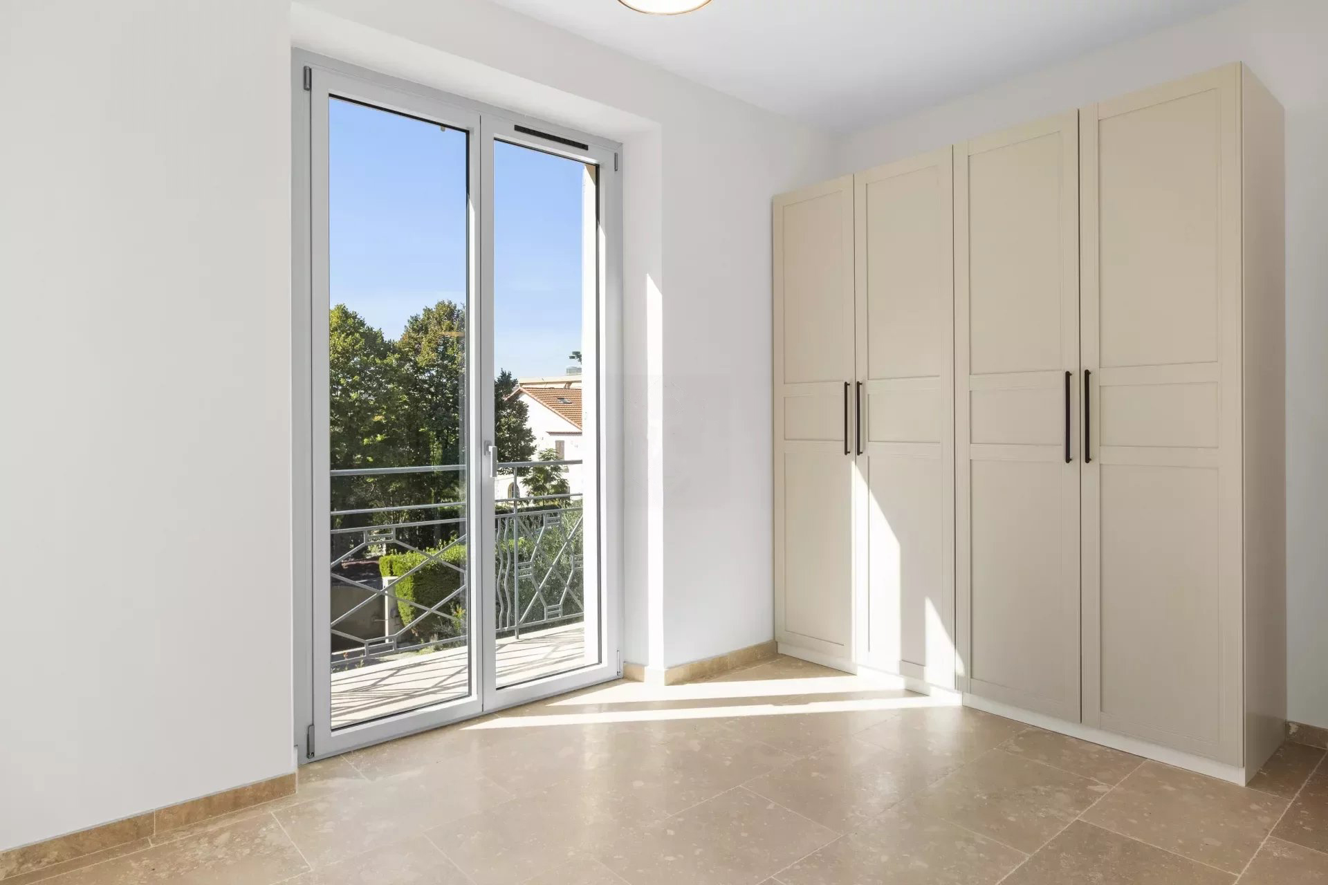 En 2023, cette maison sur trois niveaux d'une surface habitable de 250 m2 a été entièrement rénovée. Au deuxième étage, vous trouverez quatre chambres et trois salles de bains, dont une chambre parentale de 30 m2 avec un balcon privatif.