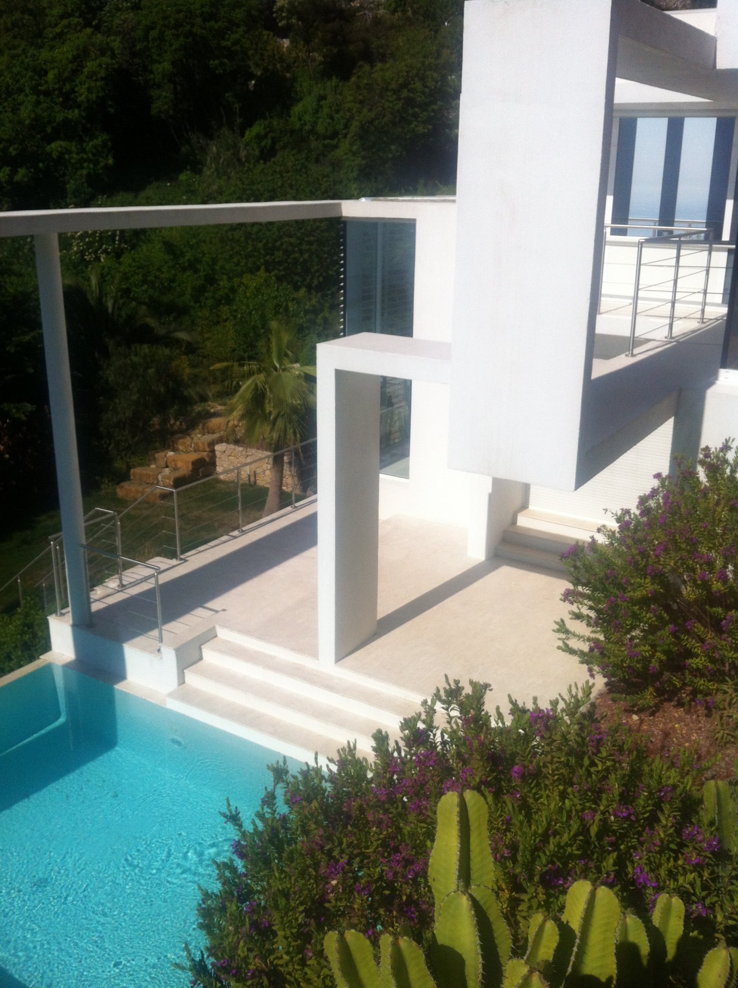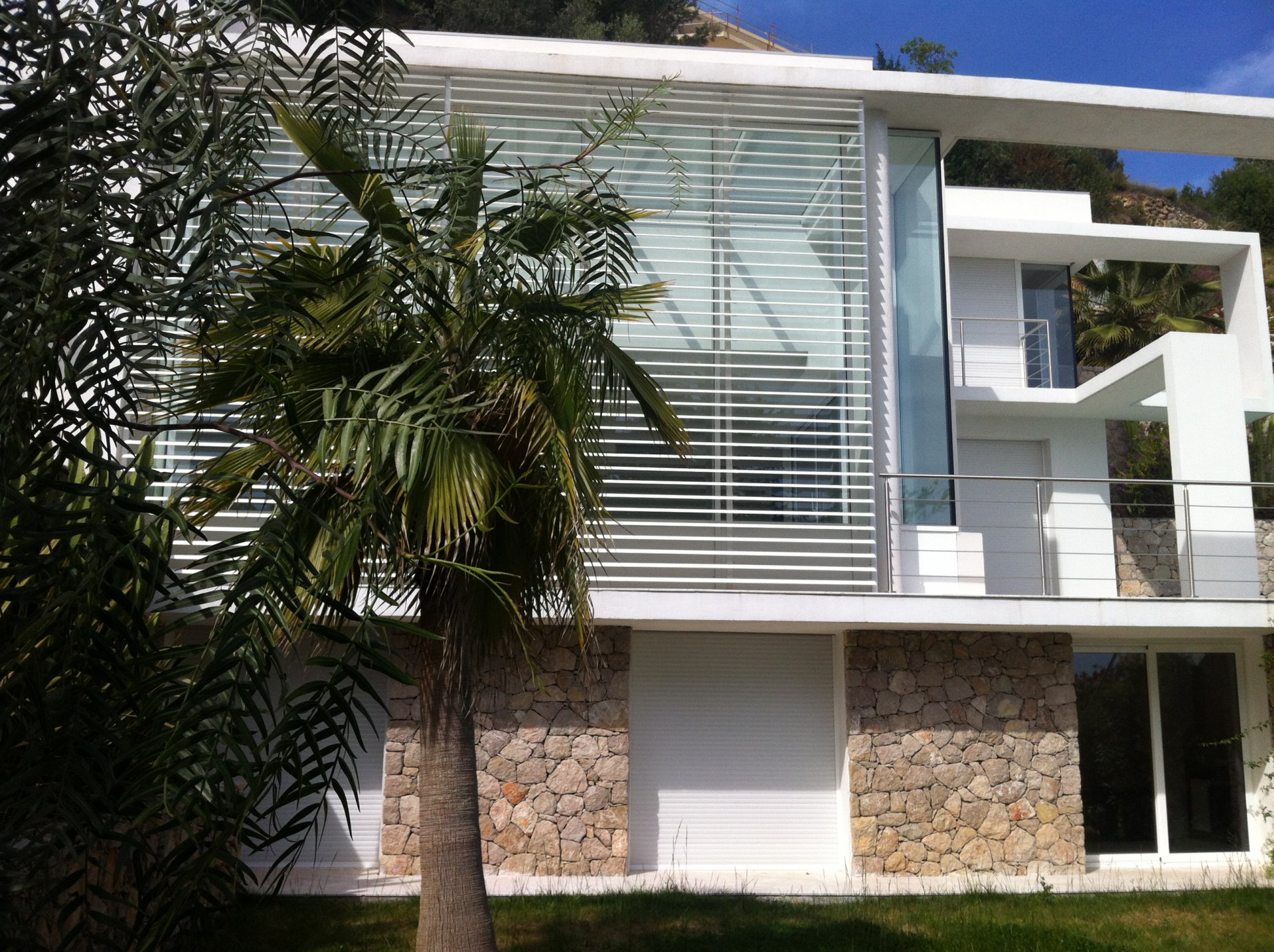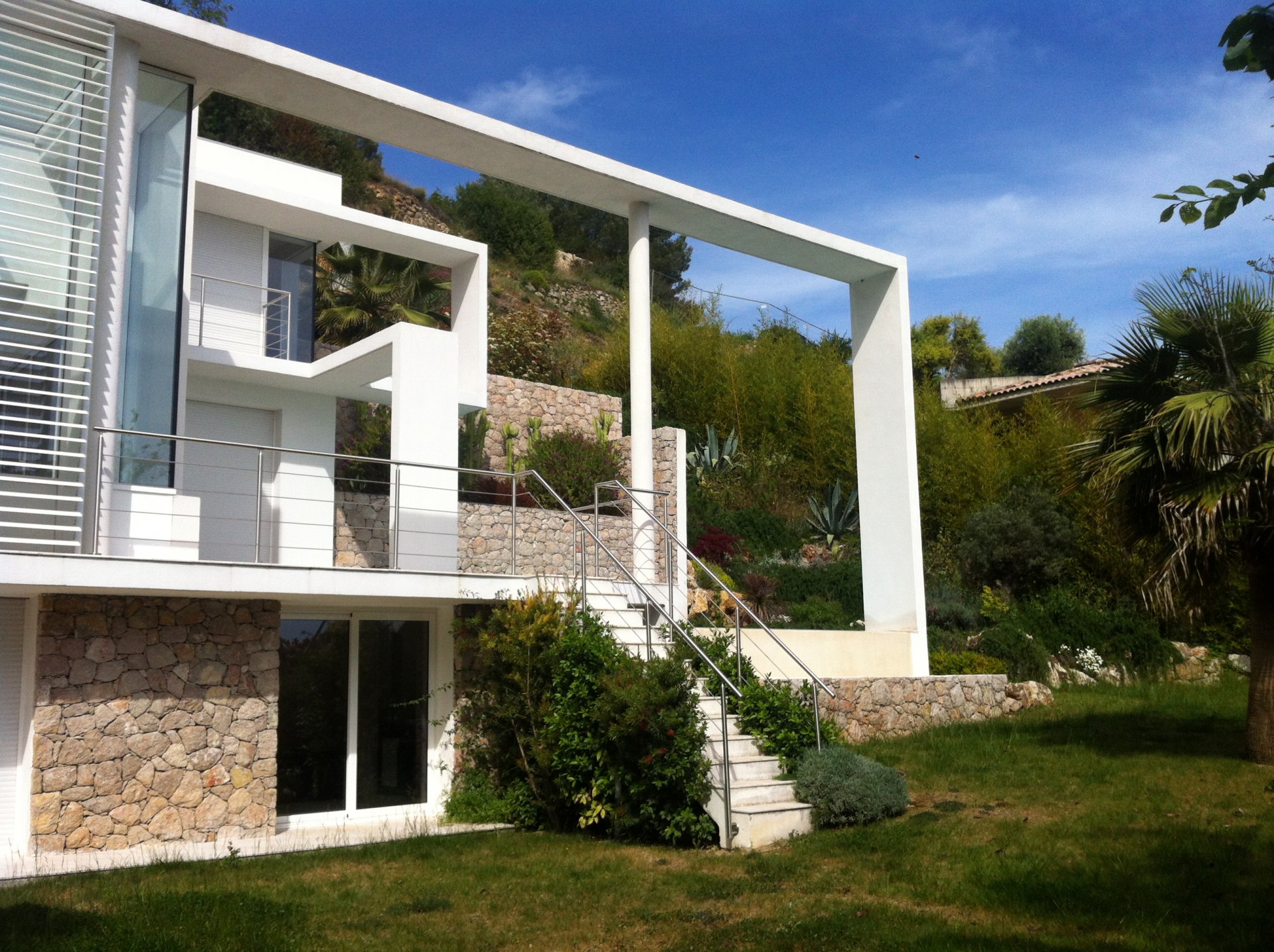 Roquebrune Cap Martin, dans un domaine privé maison d'architect neuve avec toiture plat, sur 3 niveaux avec