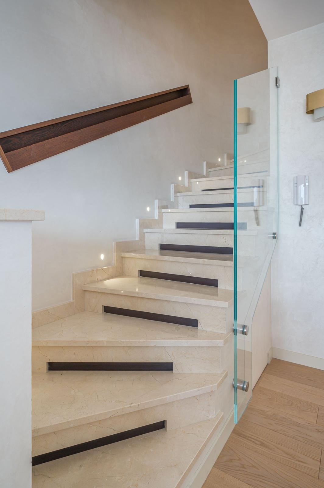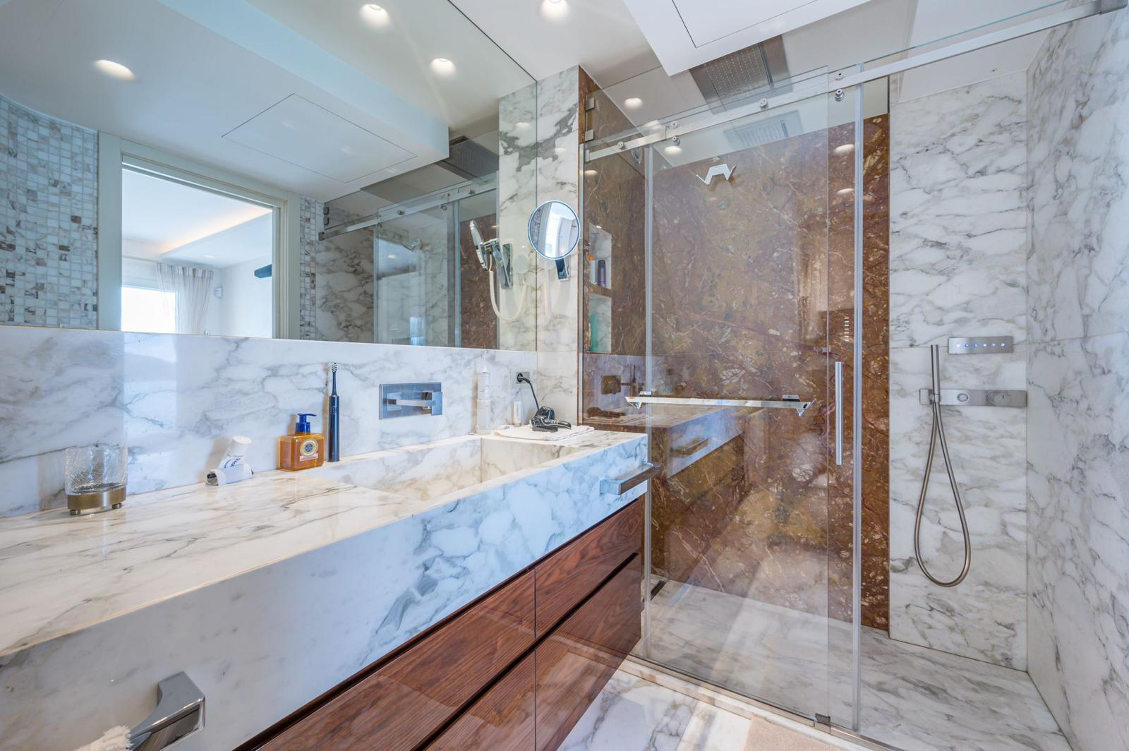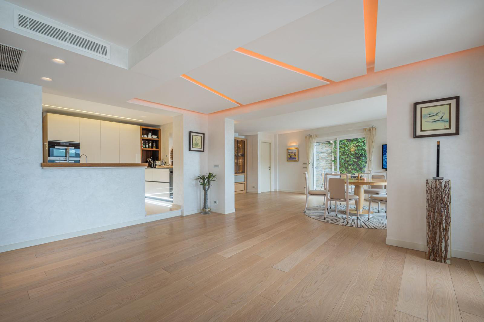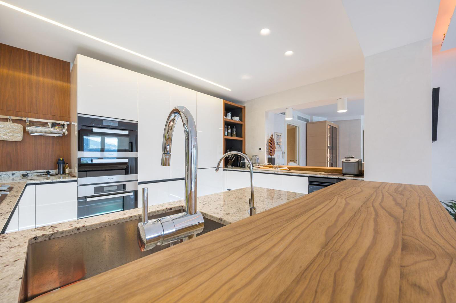 Comprenant 4 chambres à l'étage avec salles de bains en marbre et balcons, au rez-de-chaussée se trouve un grand salon et salle à manger avec une cuisine ouverte bien équipée.
