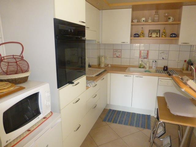 Au rez-de-chaussée un appartement 2 pièces avec séjour, cuisine, chambre et salle de bains.