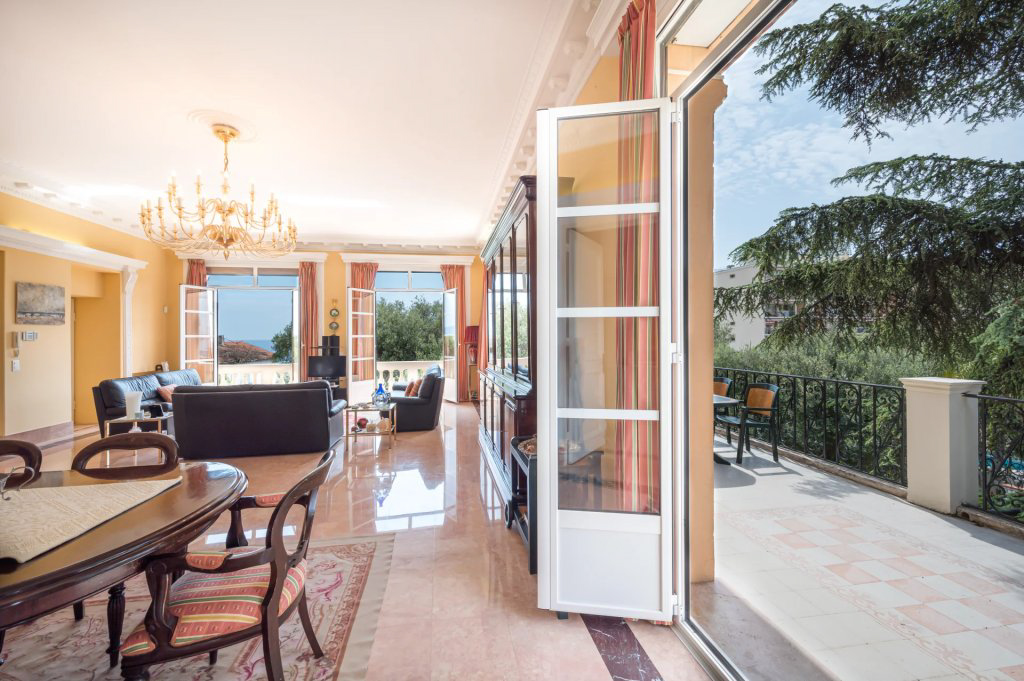 A Roquebrune-Cap-Martin, à quelques mètres des plages, dans un domaine privé doté d'un jardin planté d'oliviers centenaires, nous vous proposons un magnifique appartement au dernier étage d'une villa Belle Epoque avec une grande terrasse donnant sur la mer et le jardin.