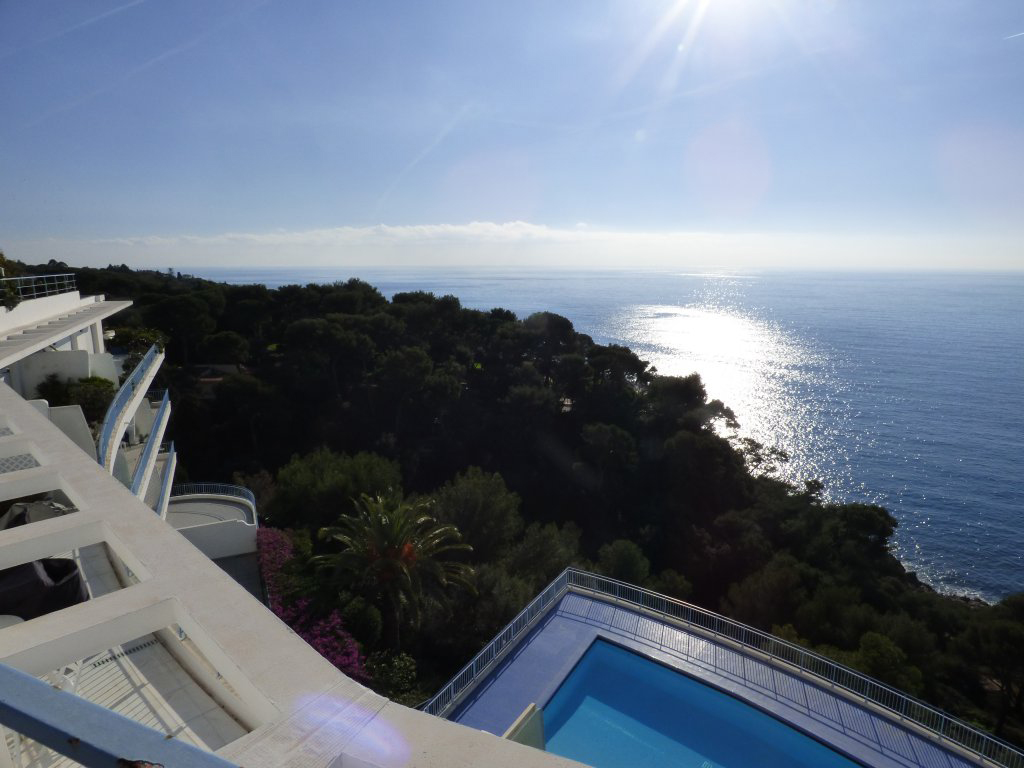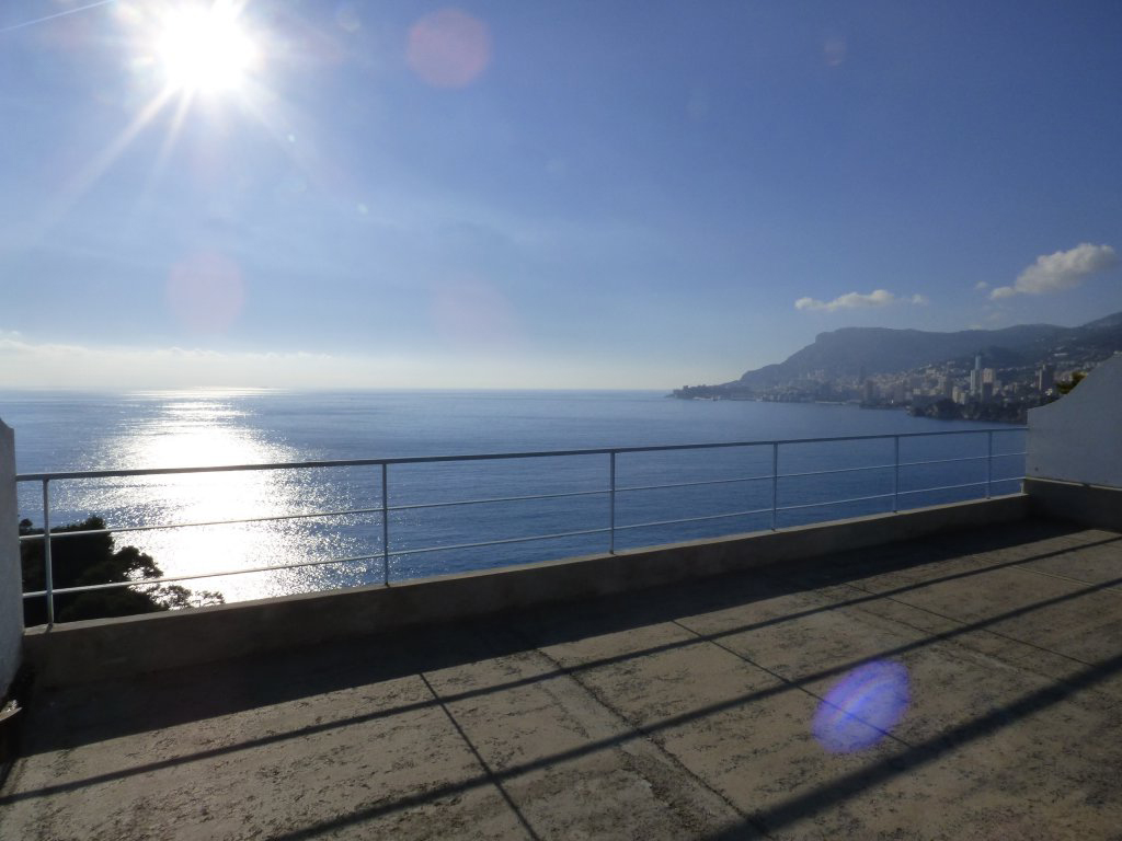 Roquebrune Cap Martin, dans une résidences de prestige avec piscine, magnifique Penthouse pieds dans l'eau avec de grandes terrasses vue panoramique sur la Principauté de Monaco, sur deux niveaux, se compose d’un salon, 3 chambres, 3 salles de bains, cuisine équipée indépendante
