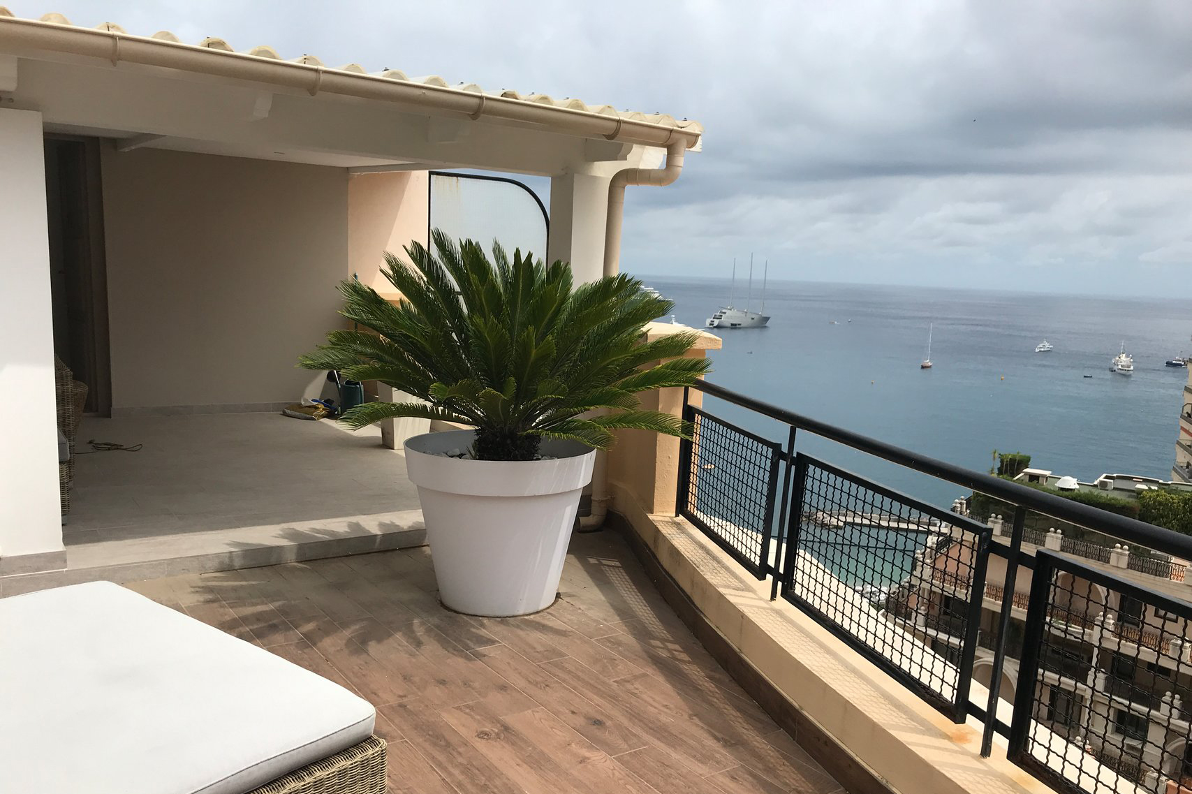 Très bel appartement avec deux chambres offrant un toit terrasse surplombant la mer.