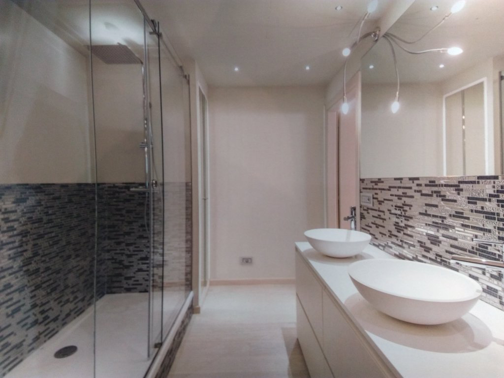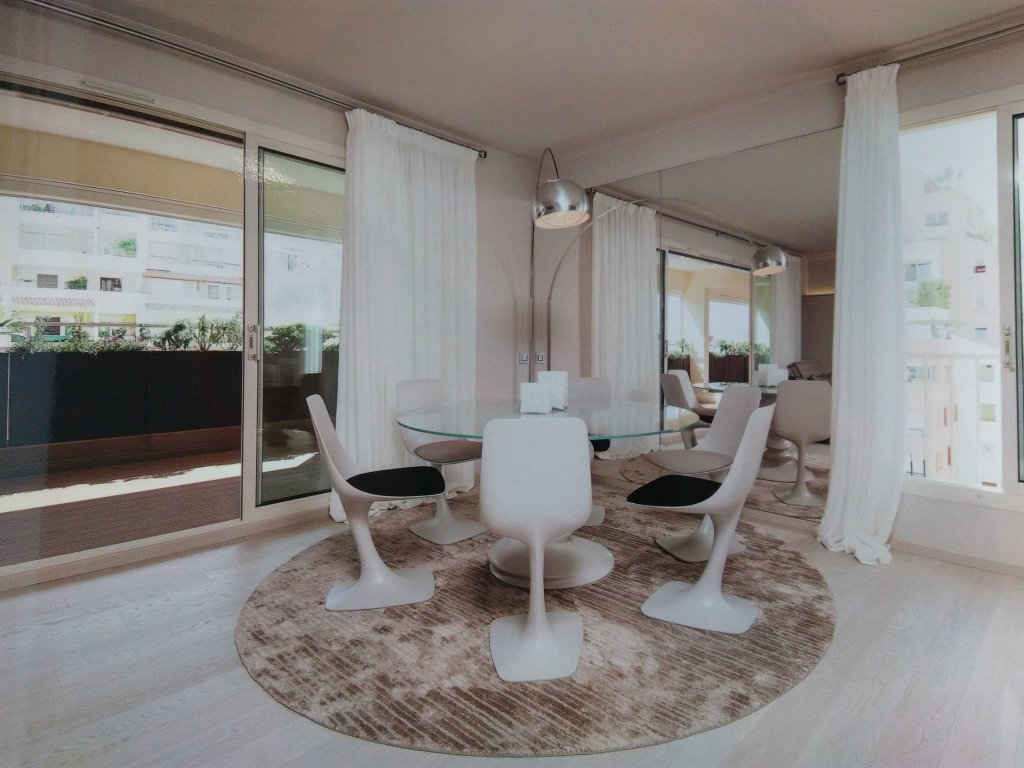 Dans une belle résidence sécurisée avec concierge, luxueux appartement cinq pièces bénéficiant de très beaux espaces extérieurs, entièrement rénové avec des matériaux nobles et décoré dans un style moderne et raffiné. L'appartement est composé d'une entrée, double séjour ouvert sur une terrasse, cuisine équipée, chambre de maître avec sa salle d'eau et dressing, deux autres chambres, salle de bains, deuxième salle d'eau et wc invités. Toutes les chambres sont ouvertes sur des jolies terrasses. Au niveau supérieur se trouve une pièce supplémentaire, à utiliser en tant que chambre supplémentaire ou un bureau, ouverte sur un magnifique toit-terrasse avec jardin et splendide vue mer, une cuisine équipée et une salle de sport. Deux caves et deux emplacements de parking complètent cette offre