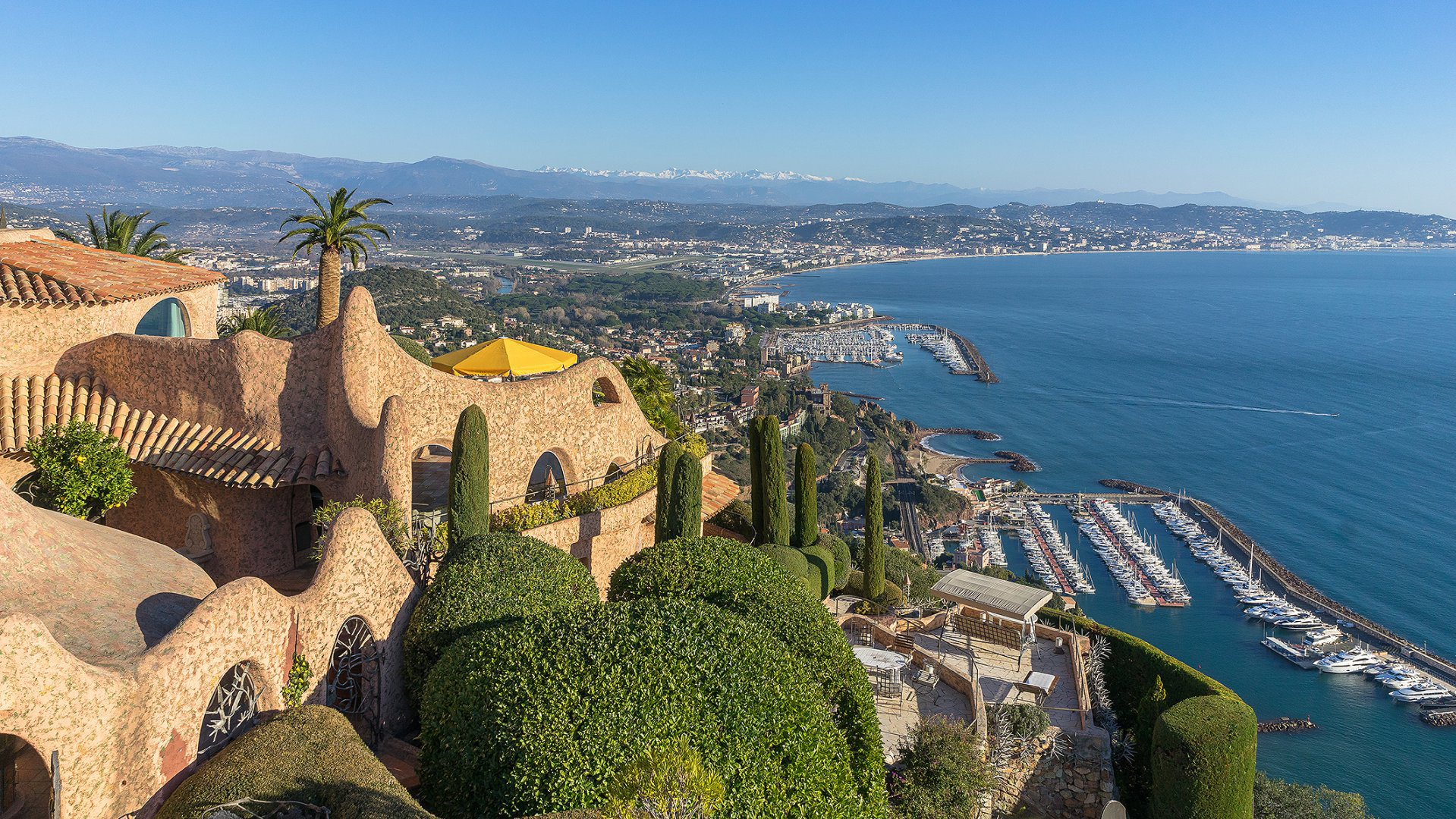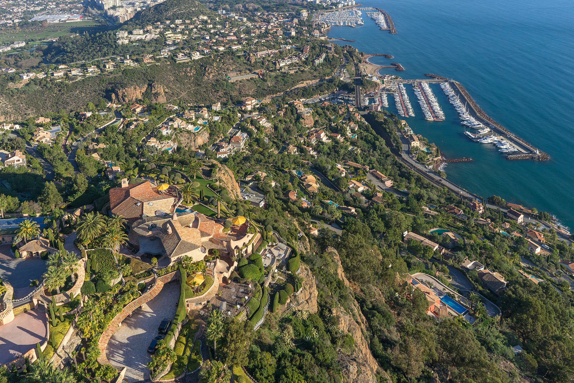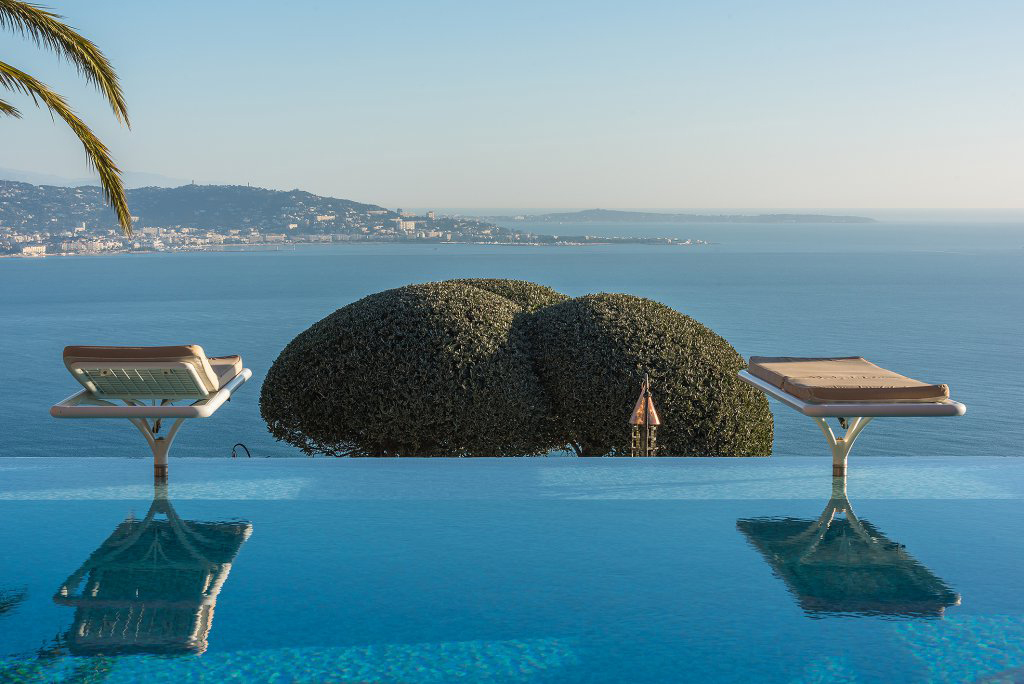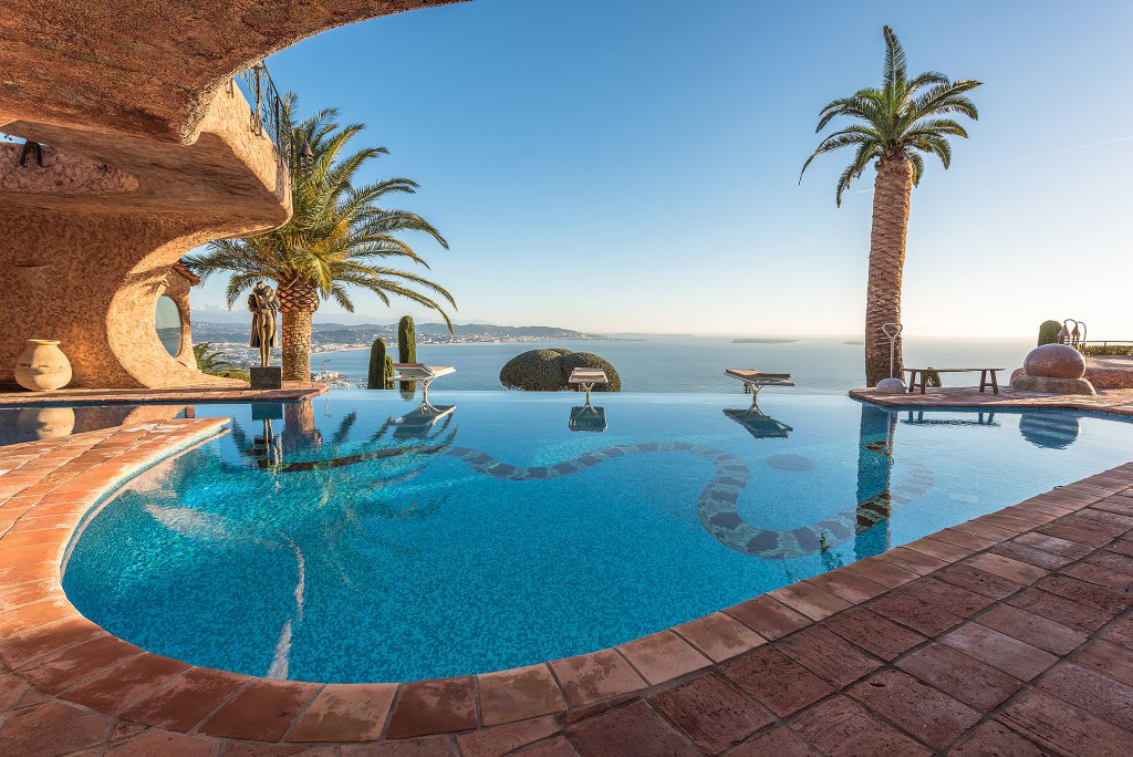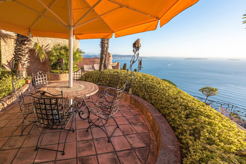 Idéalement située dans un domaine fermé, au sommet de la colline et offrant une vue époustouflante à 360° sur la mer et les montagnes, majestueuse propriété de style Couelle, unique en son genre de part sa situation, sa vue, ses volumes et ses prestations. Magnifique terrain d'environ 2,4 hectares entièrement paysager. Dominant la baie de Cannes et les Iles de Lérins, chacune de ses pièces, et ses spacieuses terrasses et balcons ainsi que sa piscine à débordement proposent un panorama féérique sur le jardin et la Méditerranée. Maison de maître, appartements d'amis et de personnel, garage fermé pour 10 voitures, nombreux parkings. A 7 min de l'aérodrome, 4 min du port et 5 min des commodités. Très certainement l'une des propriétés les plus atypiques de la Côte d'Azur qui n’a rien à envier à sa grande soeur, le très célèbre Palais Bulles de Pierre Cardin.