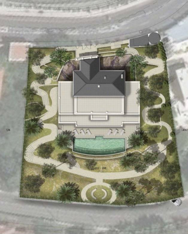 Le projet prévoit une villa avec piscine et ascenseur d'environ 1000 m2 sur 5 niveaux, comprenant :