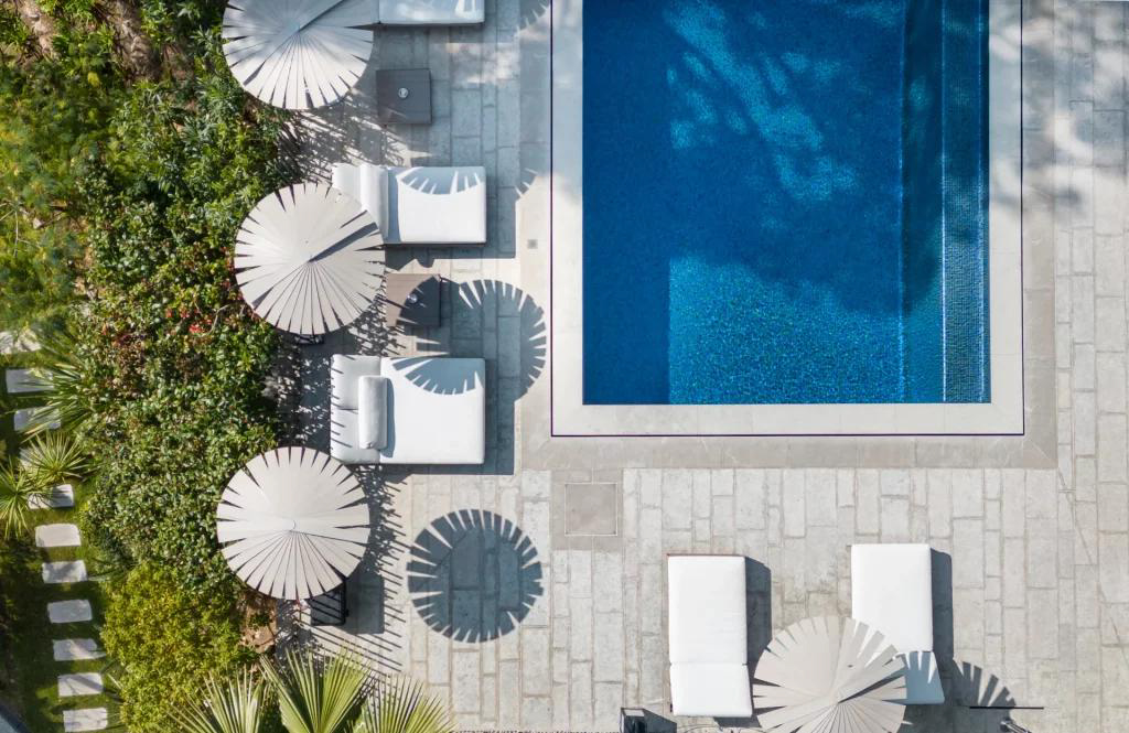 Entièrement rénovée avec des matériaux d'exception, cette villa de premier ordre d'environ 1000 m2 offre un cachet unique et un style de vie confortable pour la famille et les invités.