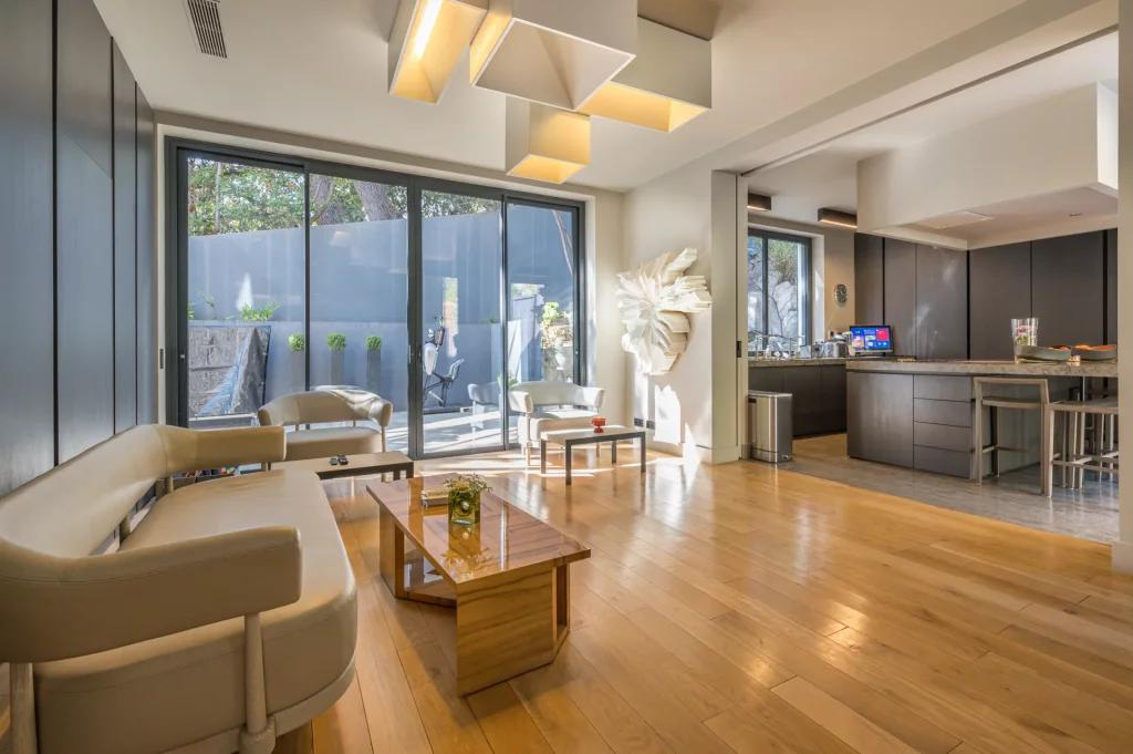 Au rez-de-jardin : un espace de vie très agréable avec de nombreux séjours, 2 cuisines, un WC invités et un accès aux piscines et diverses terrasses.