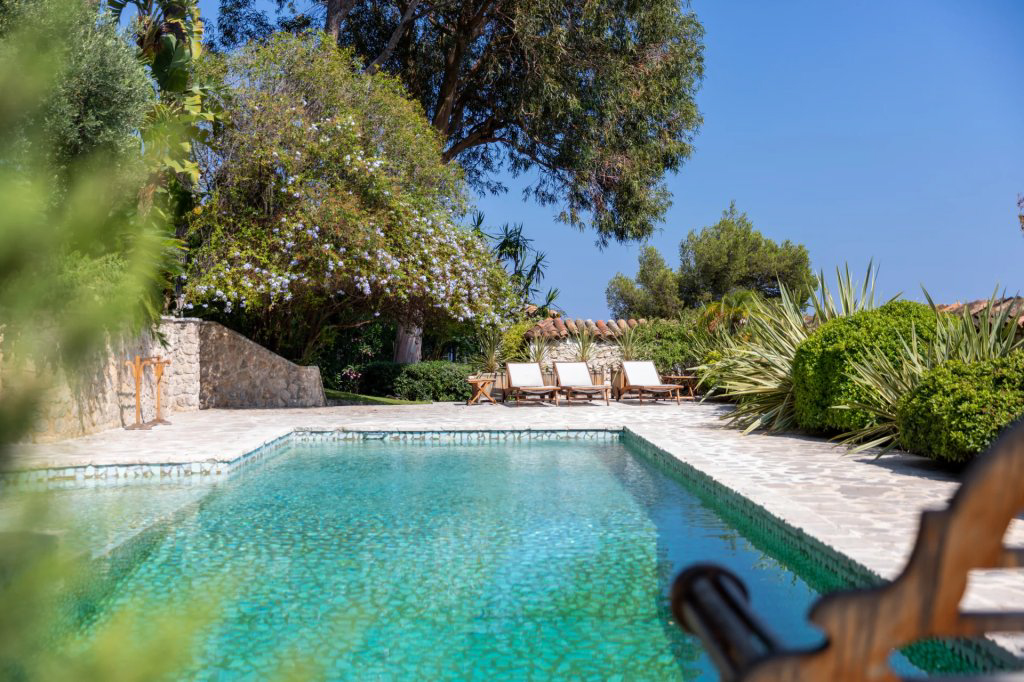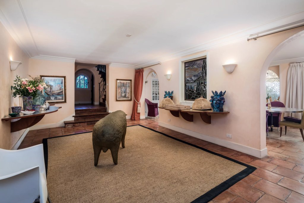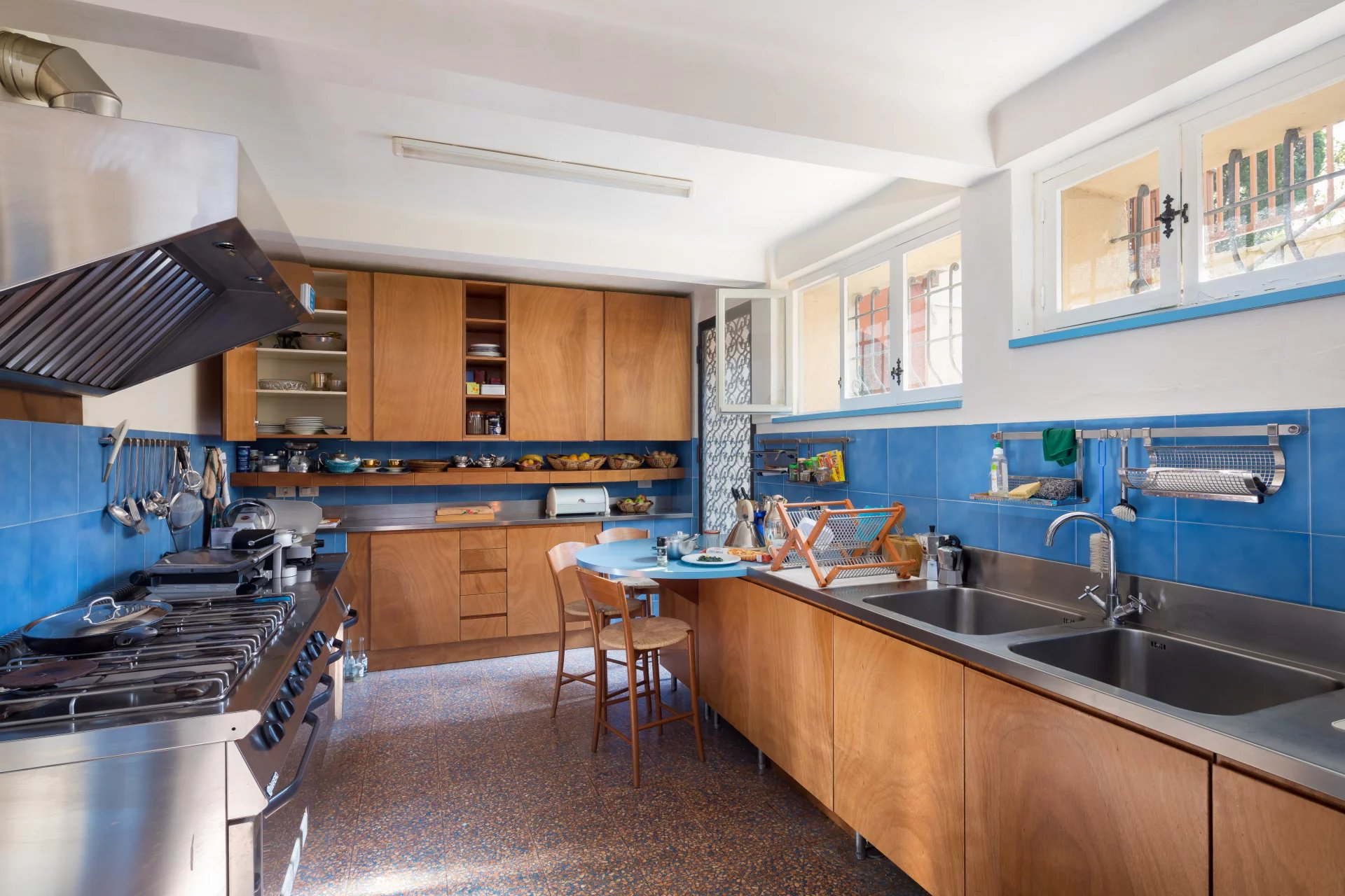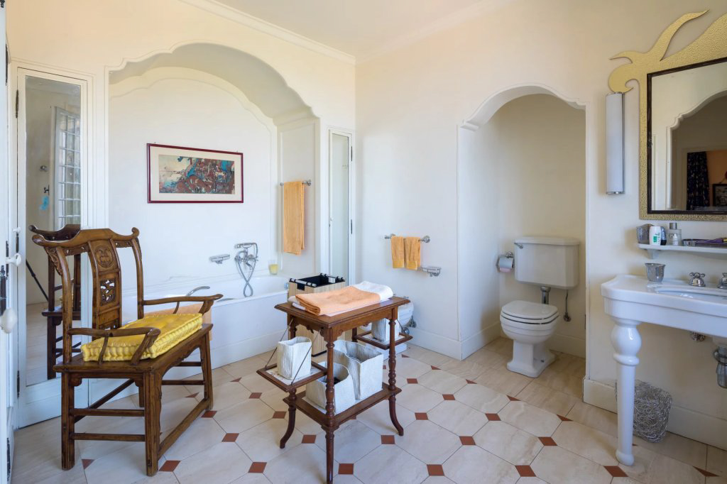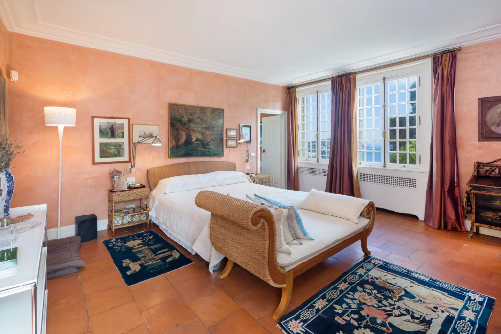 La maison est sur 3 niveaux avec ascenseur et offre de bons volumes et hauteurs sous plafond, se compose de : 5 chambres et 5 salles de bains, ainsi qu'un appartement de service séparé. La chambre supplémentaire se trouve dans une petite tour séparée au fond du jardin. Le salon et la salle à manger, ainsi que la grande terrasse extérieure avec coin repas d'été, offrent une vue magnifique sur le jardin, la mer et la vieille ville.