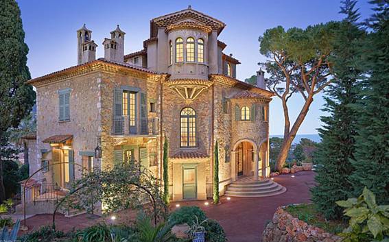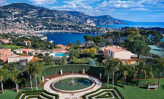 Cette luxueuse villa est située sur la colline du Mont Boron dans un grand parc paysager été construite dans les années 1920 comme la résidence de l'ambassadeur Américain en France. Tours de Chateau sont sur la baie de Villefranche, peut-être le plus bel endroit dans tout le pays, et il y a de la superbe panorama de la Cap Ferrat jusqu'à Monaco et l'Italie.