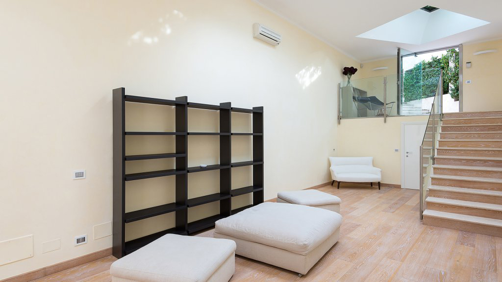 La propriété se compose au rez-de-chaussée: Hall d'entrée avec grand vestiaire, un très grand salon avec cheminée, beaucoup de lumière naturelle entrant dans cet espace grâce à d'énormes ouvertures sur la mer et le plafond, une toute nouvelle cuisine, un bureau / chambre simple , un WC visiteurs, buanderie avec un autre WC visiteurs.