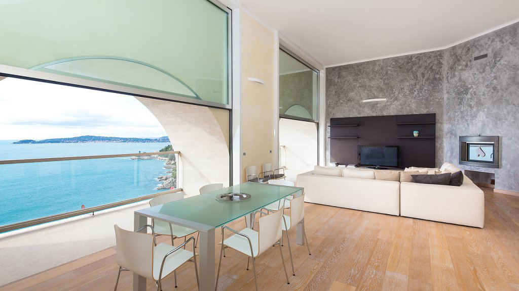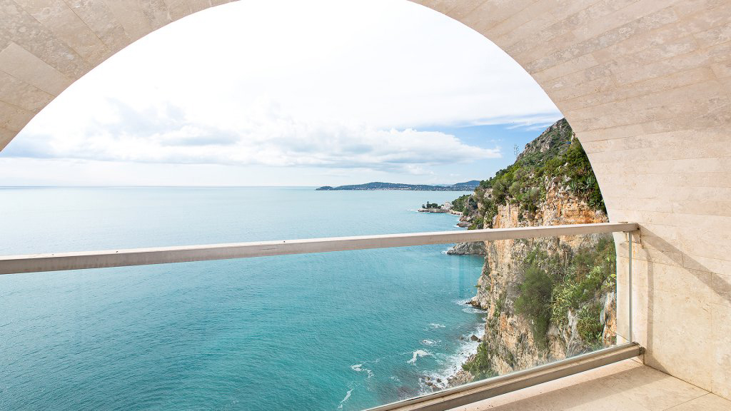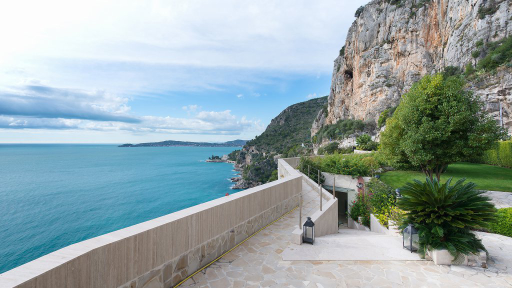 Cette propriété unique en son genre bénéficie d'une vue mer panoramique avec à l'ouest une vue sur le Cap Ferrat.