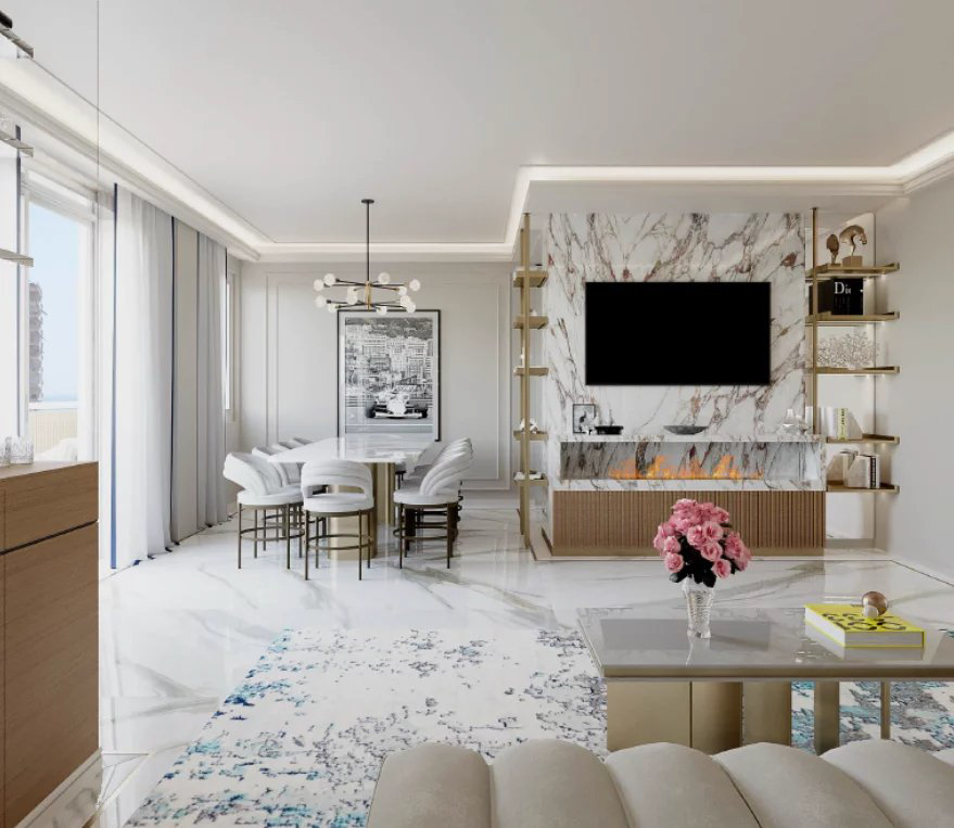 Dans le prestigieux quartier de Monte Carlo, à deux pas des plus belles boutiques de luxe et de la célèbre Place du Casino, grand 5 pièces rénové avec vue mer imprenable.