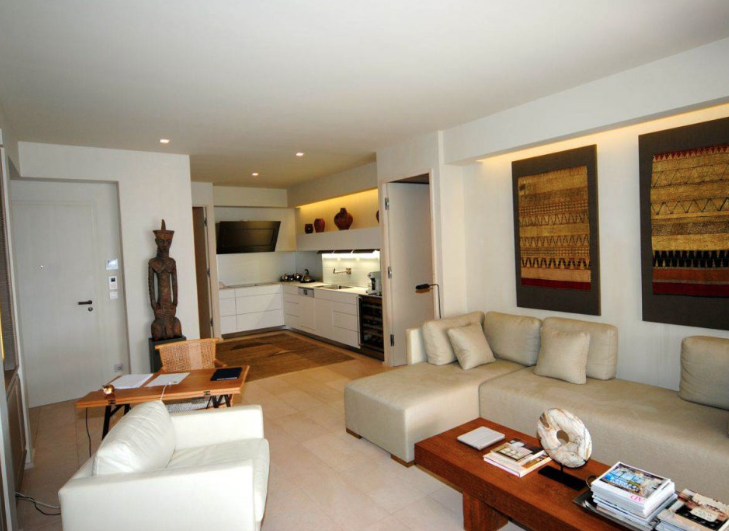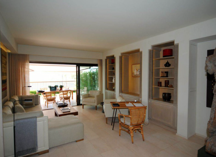 Appartement très élégant avec deux chambres à coucher, en excellent état, dans une résidence de prestige avec piscine et gardien. Ces appartements lumineux sont situés dans le sud-ouest et ont une incroyable vue panoramique sur mer depuis la terrasse spacieuse avec un jardin. L'appartement se compose d'un séjour avec cuisine équipée ouverte, deux chambres et deux salles de bains avec douche. Sous-sol et garage.
