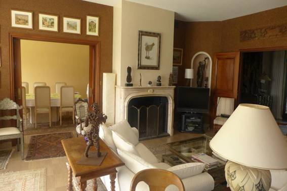 - Salon de 70 m2 avec cheminée et fenêtres donnant sur le côté sud