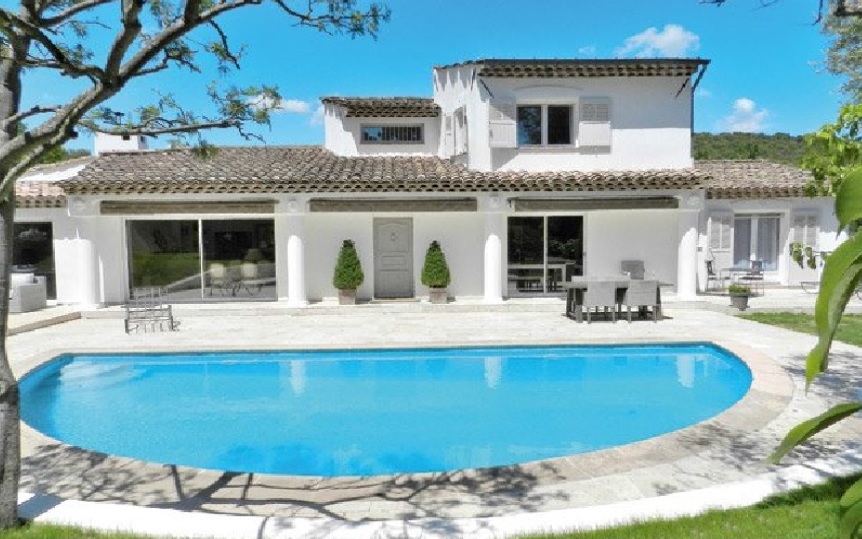 Excellent, villa rénovée sur la Côte d'Azur, situé dans une zone fermée à Mougins. Les fenêtres orientées au sud. Près d'un terrain de golf et école internationale. Dans la belle, de jardins paysagers, une belle piscine et d'un terrain pour la pétanque.