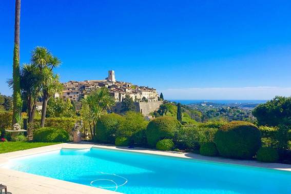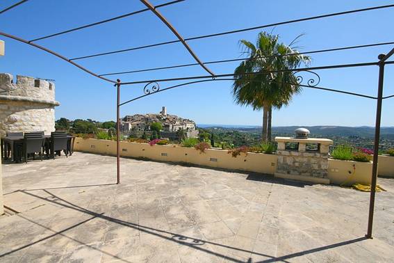 La villa est située près du célèbre restaurant Colombe d'or (LA COLOMBE D'OR). La maison principale est faite de cher, pierre blanche, avec un toit-terrasse agréable (100m2) avec vue sur la mer et le village. La maison a une exposition sud. Sur le territoire de la maison d'hôtes, une maison individuelle, un beau jardin avec des escaliers en marbre et des plantes méditerranéennes, piscine (11 x 4,5) avec chauffage, coin barbecue.