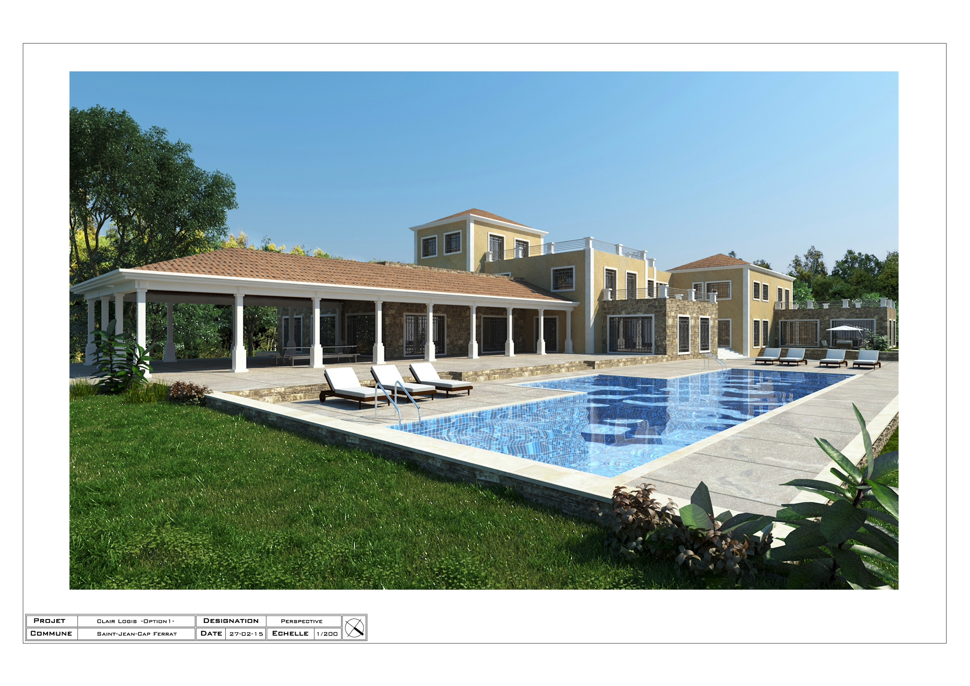 La maison principale a été conçue dans le style italien avec un dôme central, bâtiment inspiré Negresco. Il y a environ 400 m2 couverts et ouverts terrasses autour de la maison, y compris le toit-terrasse avec jacuzzi donnant sur la mer.