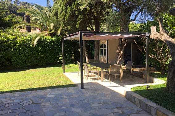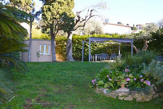 Agrémentez villa historique à Bordighera jardin bien entretenu avec une grande terrasse panoramique et une pergola pour manger en plein air, garage, superficie de 30 m²