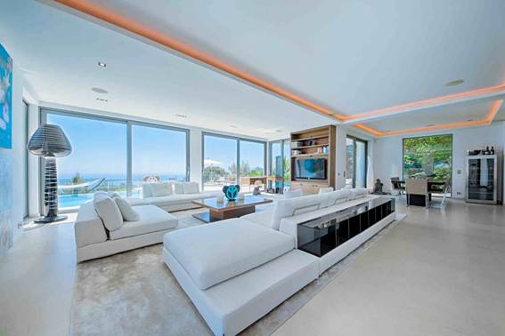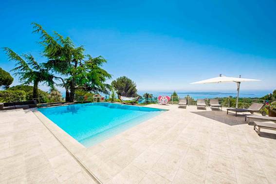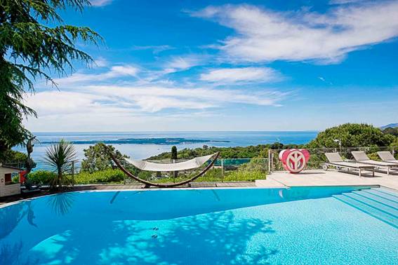 Villa moderne située sur les hauteurs de Cannes et offre une vue panoramique à couper le souffle. Le territoire dispose d'une piscine chauffée.