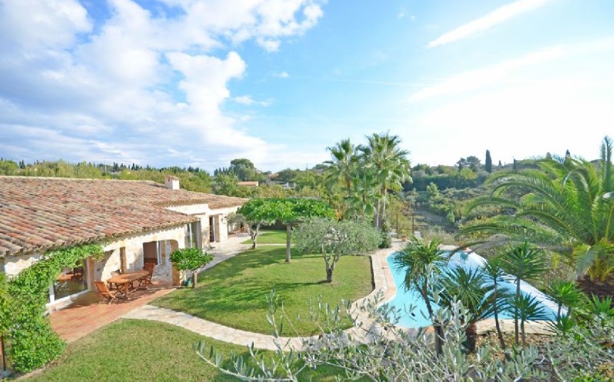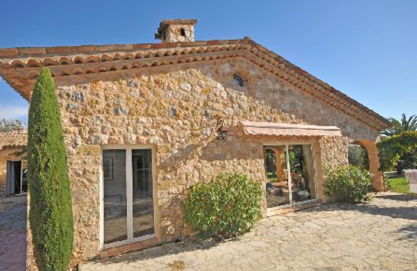 Belle villa en pierre sur la Côte d'Azur à Valbonne, est à distance de marche du village. Les fenêtres orientées au sud. Un jardin paysager et une piscine.
