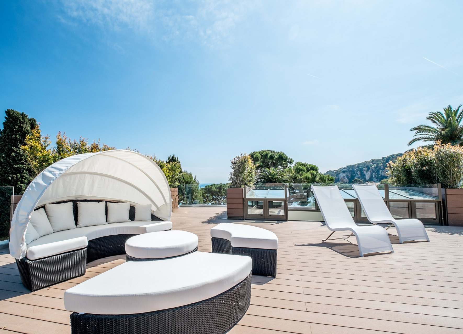 Deux grandes piscines d'accès facile offrent une pause rafraîchissante depuis les terrasses ensoleillées et les balcons qui accompagnent chacune des villas. De vastes espaces de vie et extérieurs sont conçus pour se prélasser au soleil et profiter du climat irrésistible de la Côte d'Azur toute l'année. L'hôtel est entouré de jardins verdoyants et dispose d'un sentier pédestre privé menant directement à Port Saint-Jean, un lieu clé pour les sports nautiques. En plus de tout cela, il y a un parking intérieur/extérieur pour une dizaine de voitures.