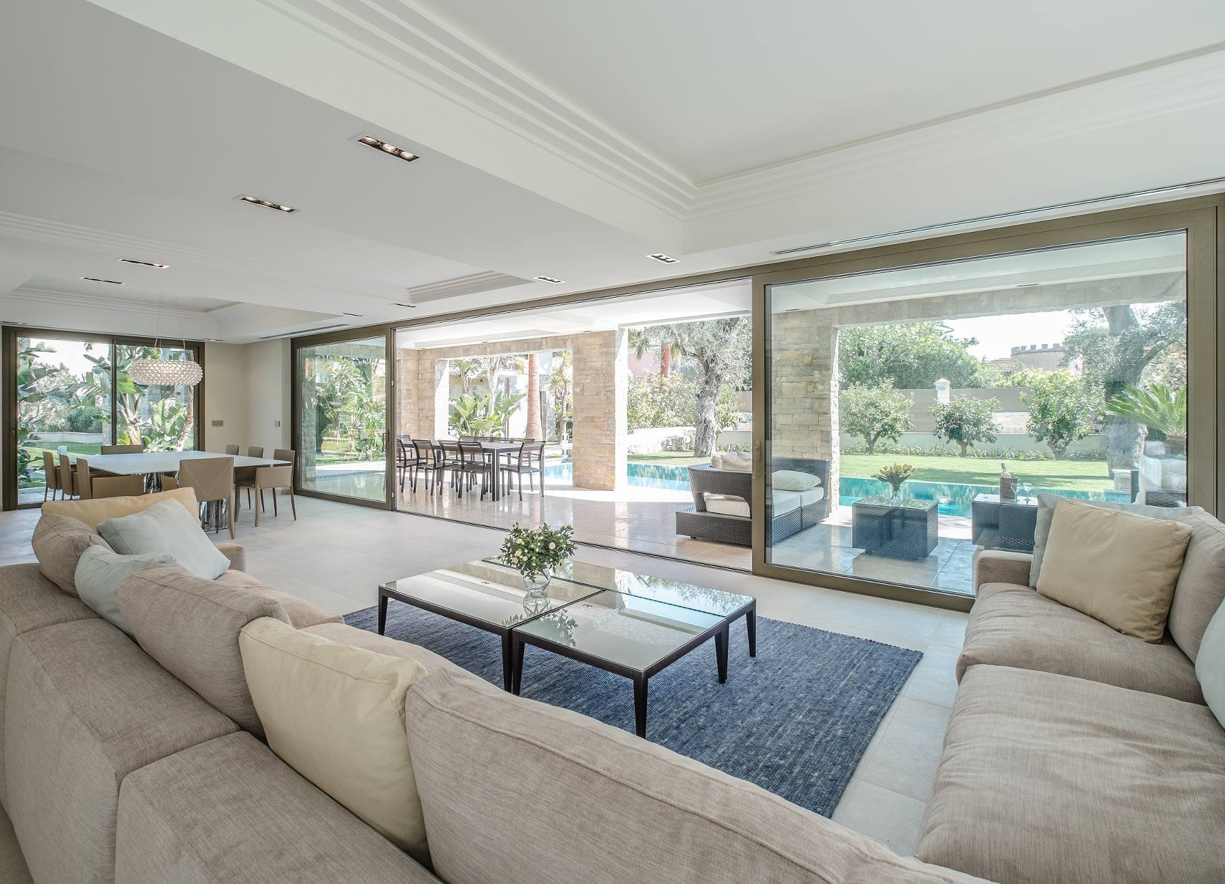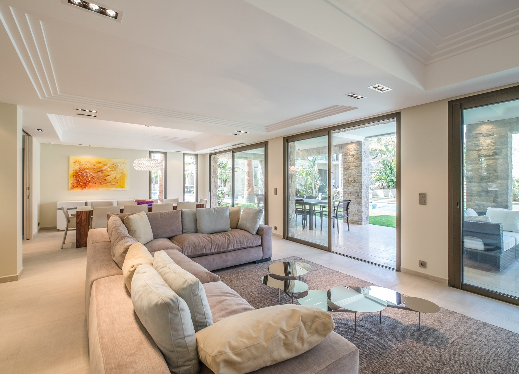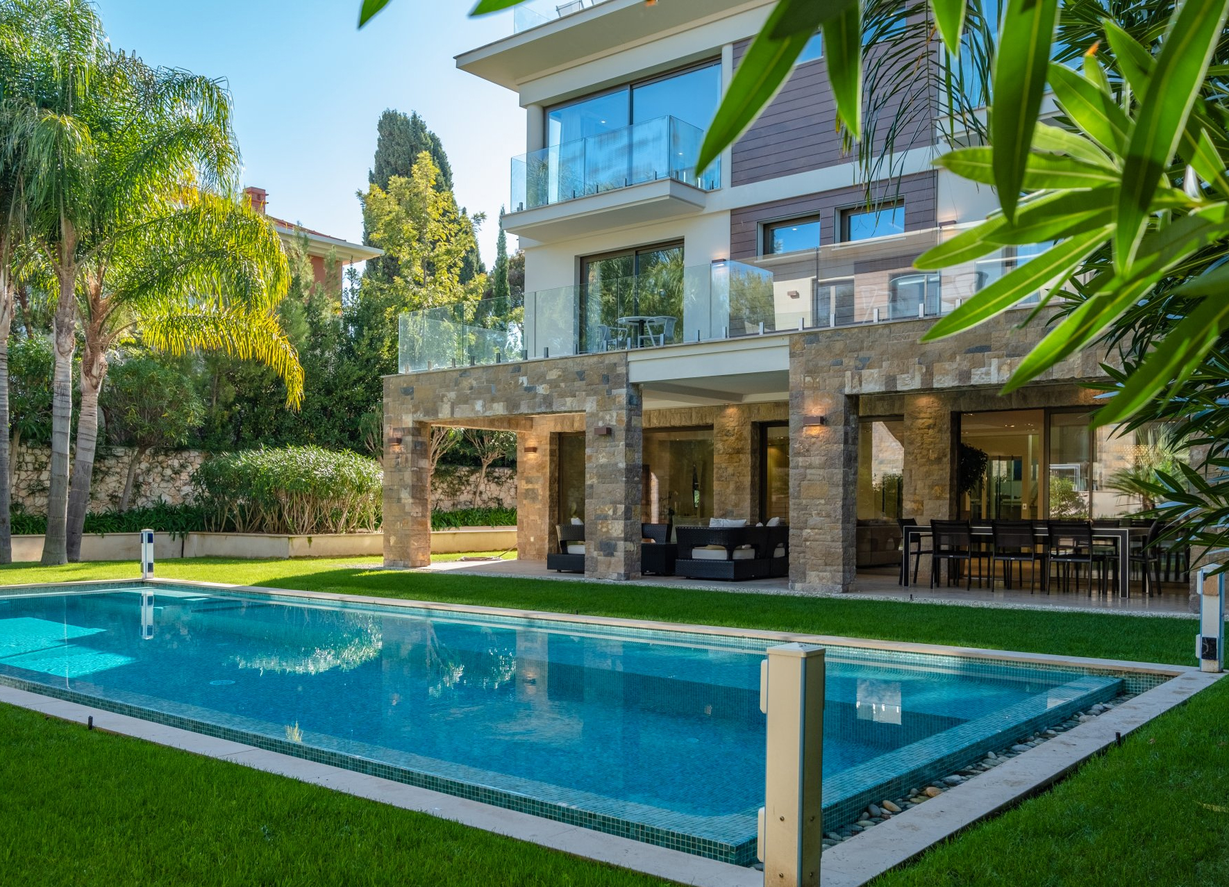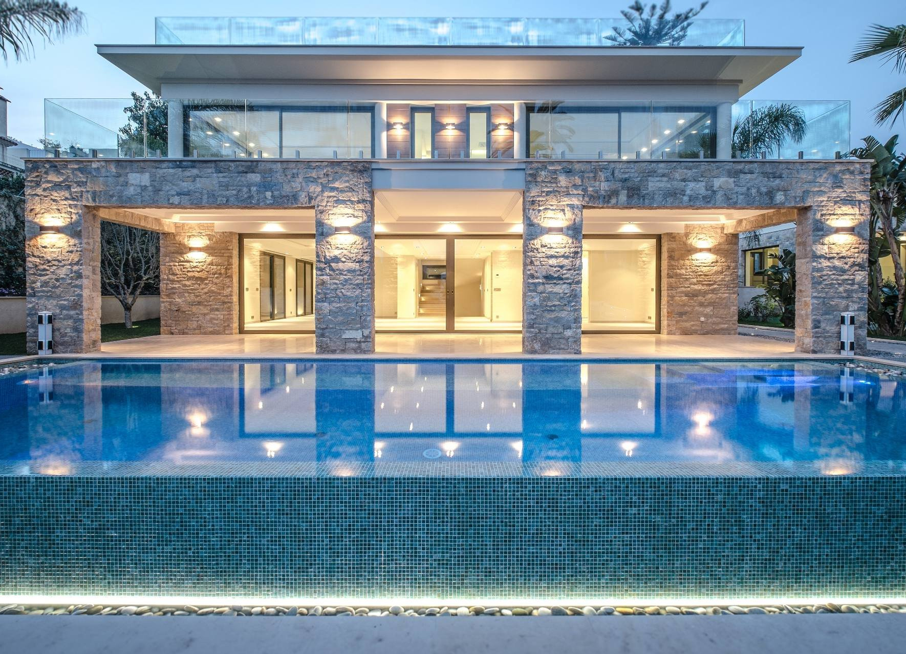 Piscine, Climatisation, Double vitrage, Fenêtres coulissantes, Abri de voiture, Arrosage, Éclairage extérieur, Accès handicapés, Ascenseur, Alarme, Portail automatique, Interphone, Coffre-fort, Vidéosurveillance, Vidéophone, Stores, Maison de gardien, Domotique, Fenêtres aluminium, Internet, Clôture, Alarme incendie, Porte blindée, Ameublement.