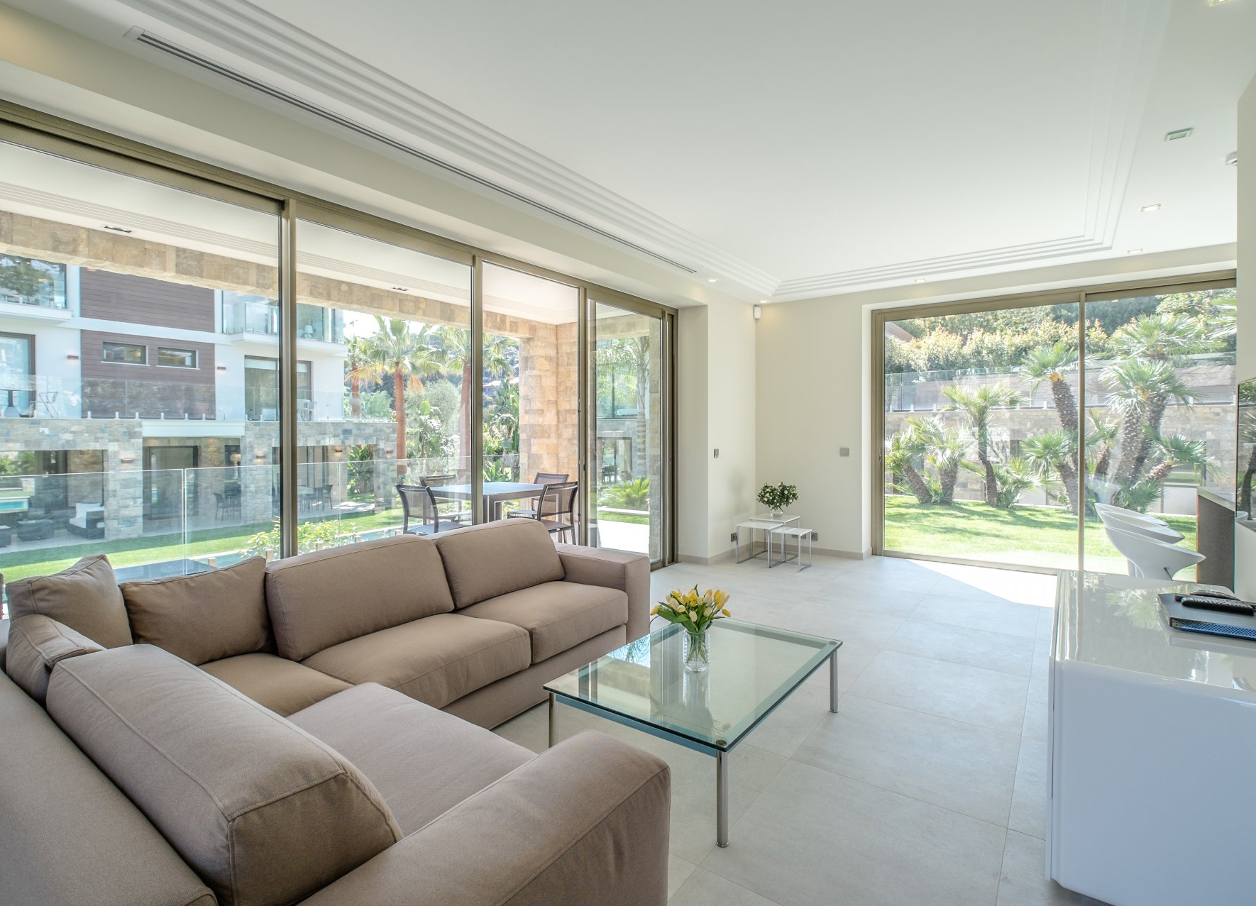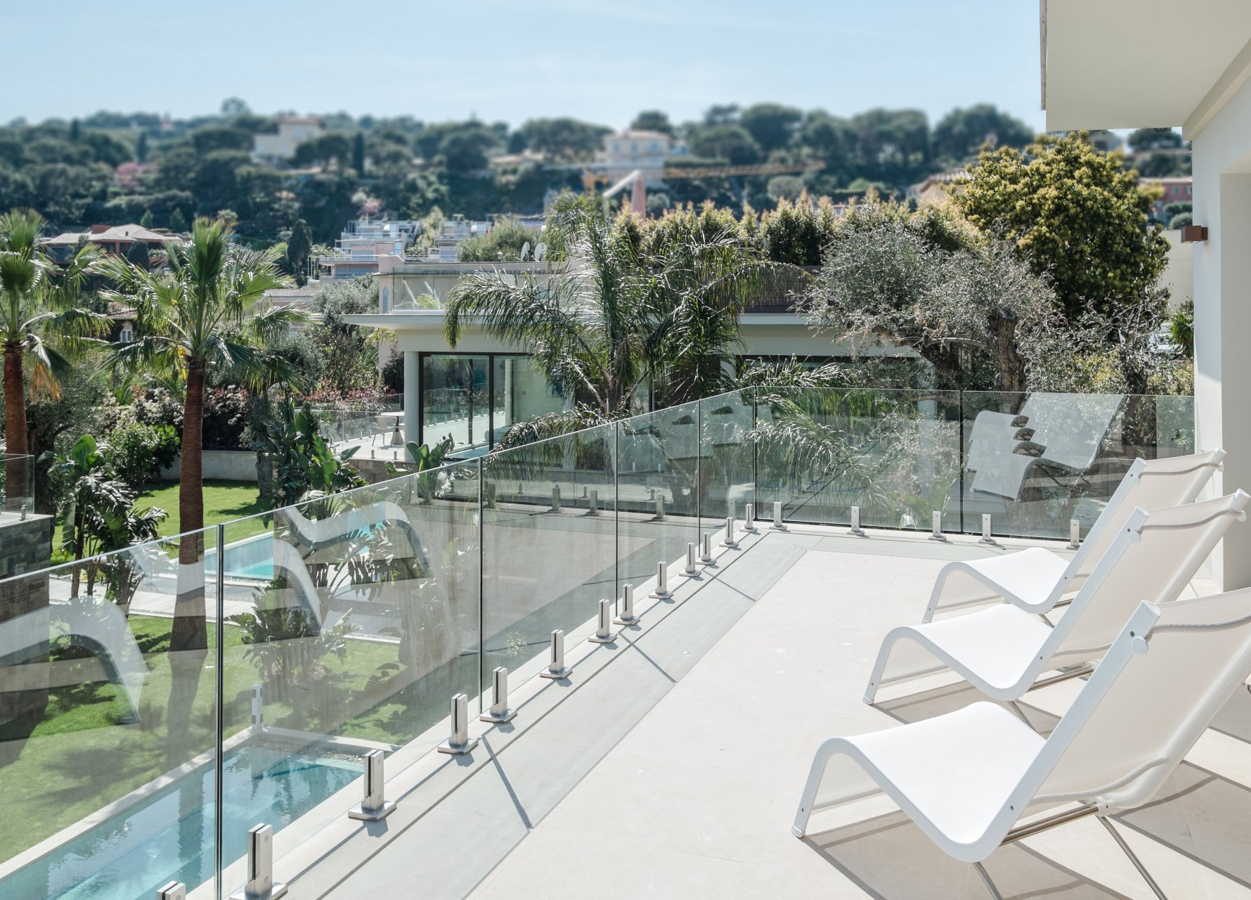 La Villa Bianca, la deuxième villa principale, dispose de quatre chambres spacieuses avec terrasses ou balcons extérieurs, d'une salle pour le personnel et d'un spacieux salon et salle à manger. Le sous-sol de la villa peut être encore agrandi pour inclure, par exemple, un espace spa. La villa offre également un toit-terrasse complet qui bénéficie du soleil toute la journée grâce à son orientation sud. La villa est entourée de jardins luxuriants et dispose d'une grande piscine à l'avant.