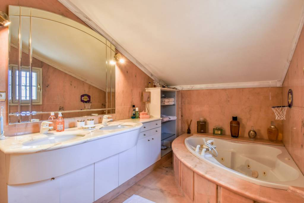 Total : 3 niveaux, 12 pièces, 1 salon, 1 hall, 1 salle à manger, 2 cuisines, 9 chambres, 6 salles de bains, 1 salle d'eau, 1 buanderie, 1 salle de sport, 1 hammam, 1 sauna, 1 cave, terrain ( 1555 m²).