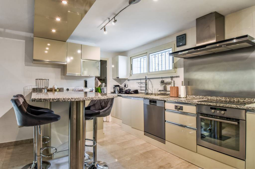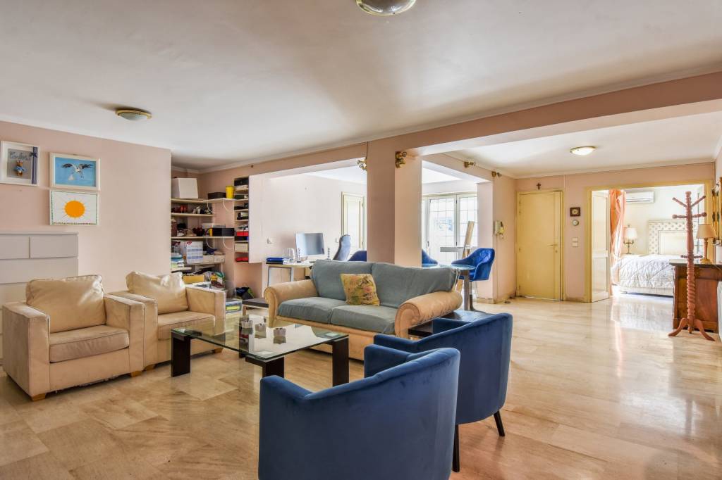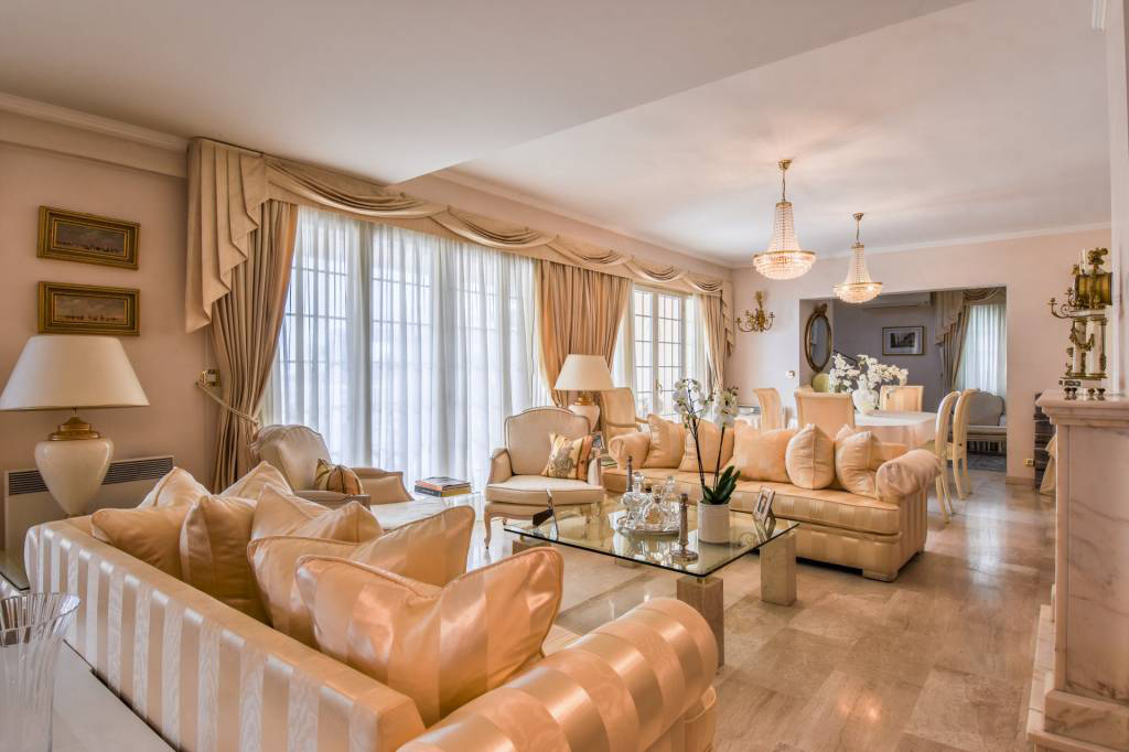 Rez-de-jardin : grand séjour, deux chambres, deux salles de bains et une cuisine.