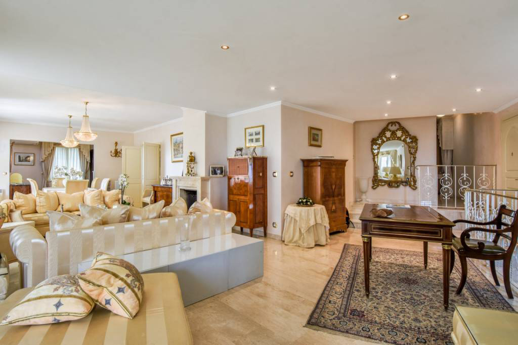 La villa dispose de 12 pièces réparties sur trois niveaux et se compose de :