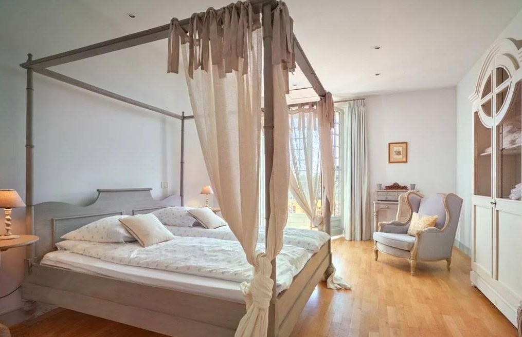 Chambre principale avec balcon donnant sur la mer.