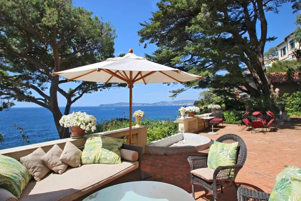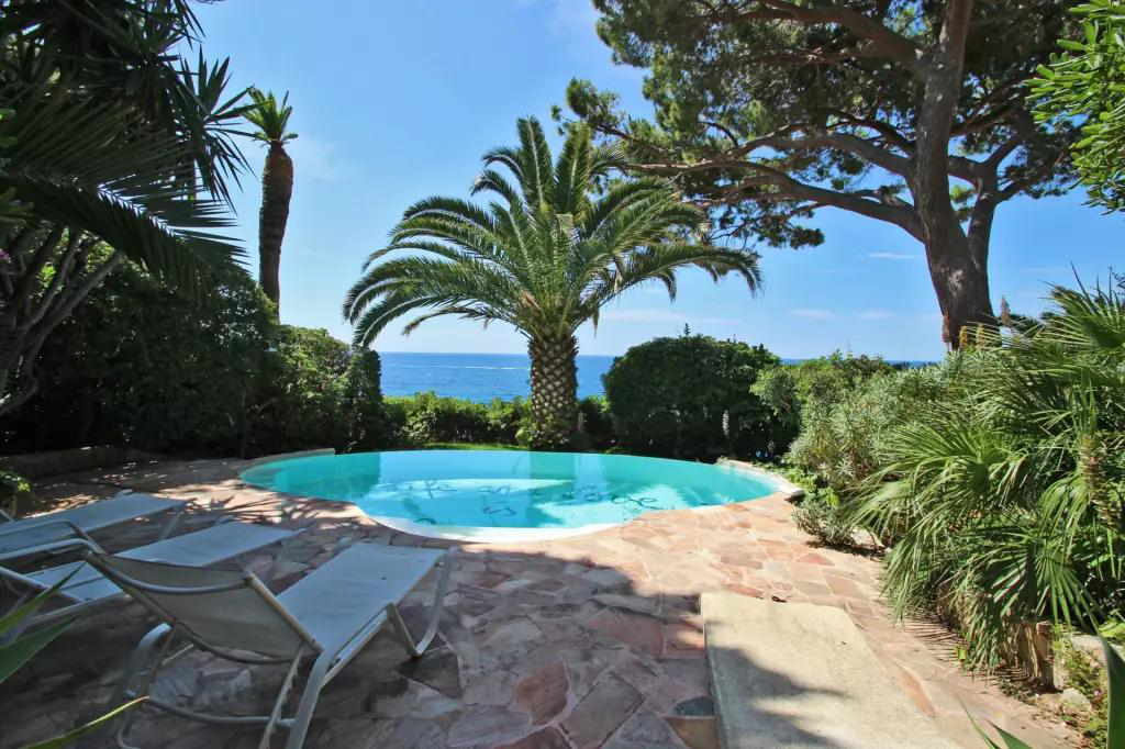 Dans un jardin méditerranéen, vous trouverez un salon-salle à manger d'été avec accès à une belle terrasse menant à la piscine et accès direct à la mer.