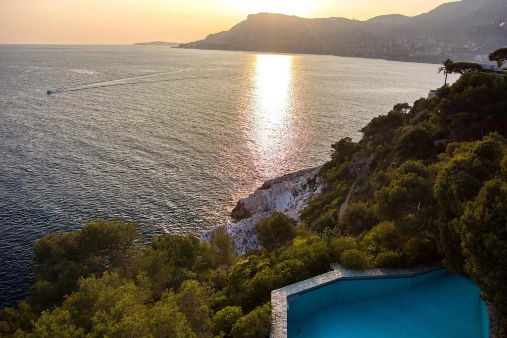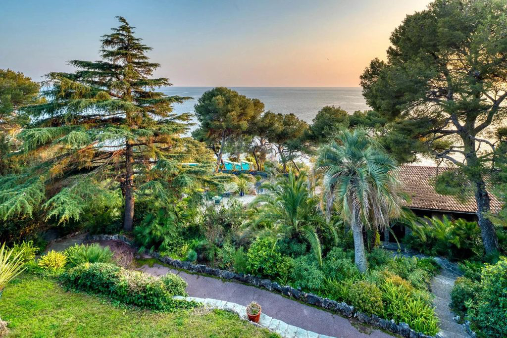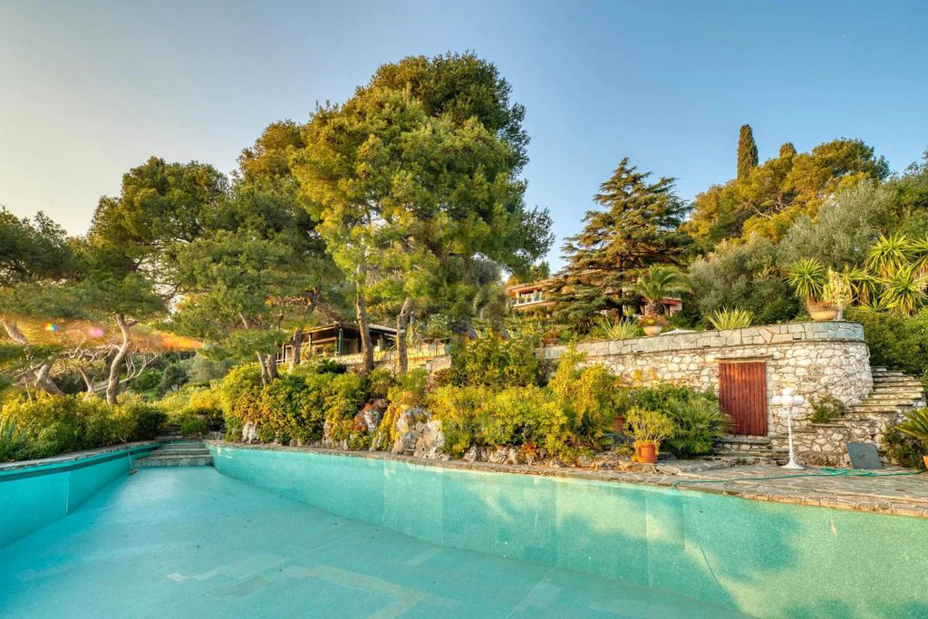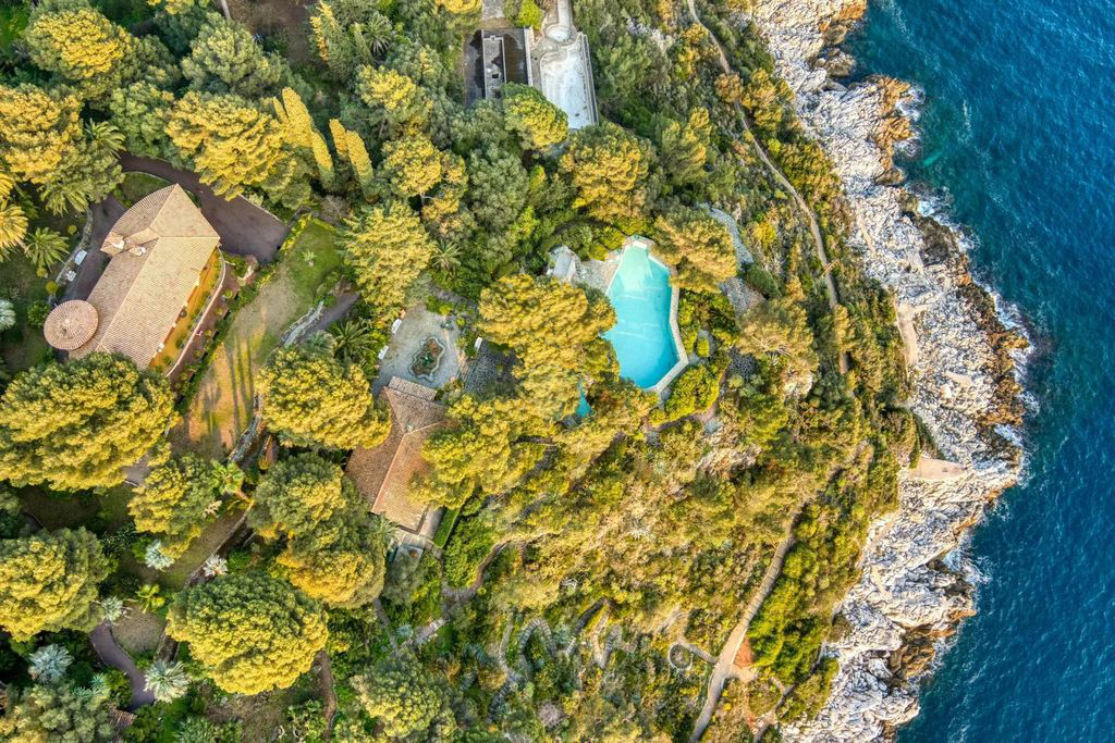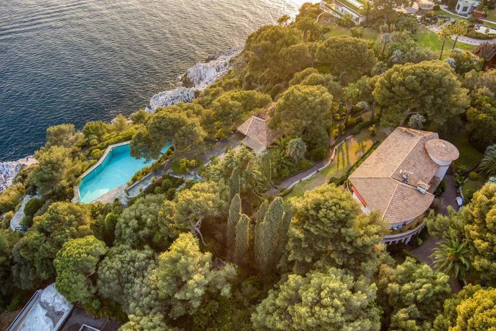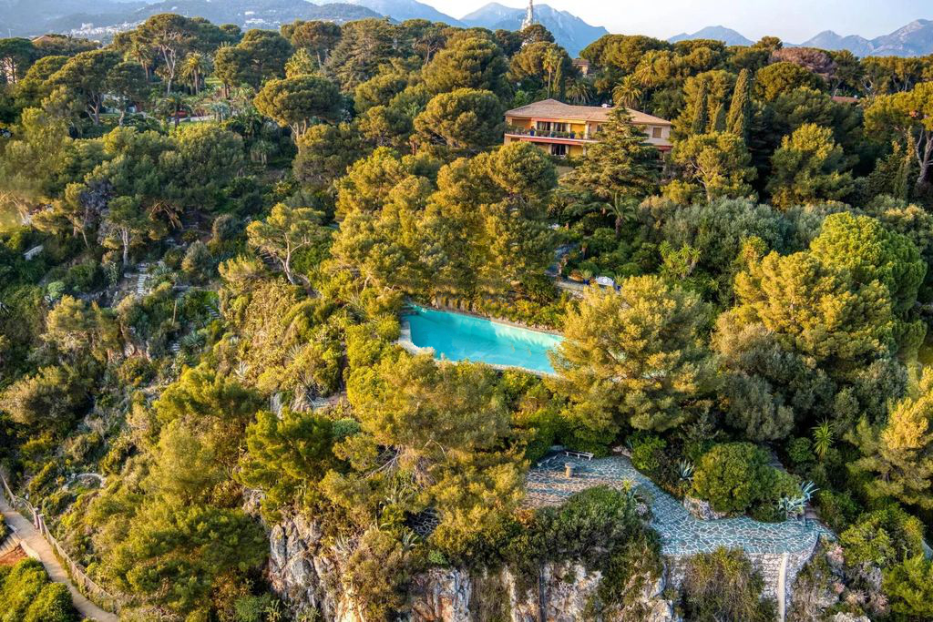 Propriété Cap Martin privée et sécurisée : au calme, maison exceptionnelle et rare exposée sud-ouest, d'environ 550 m2 avec terrasses, édifiée sur un terrain arboré de 13 800 m2 avec de nombreuses vues méditerranéennes, piscine et jardins descendant jusqu'à la mer.