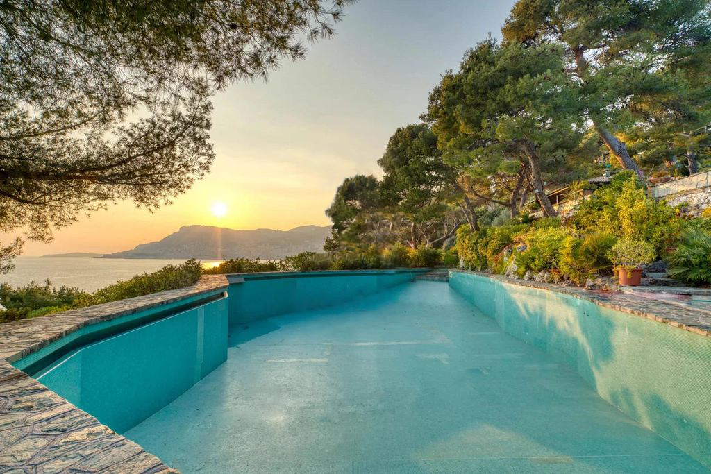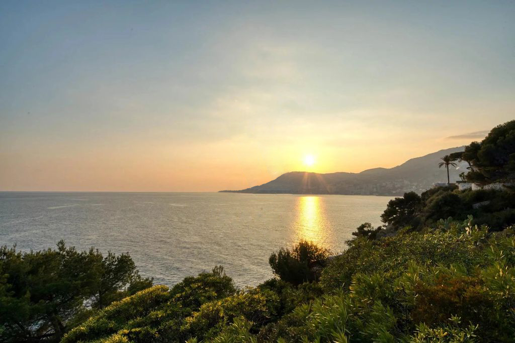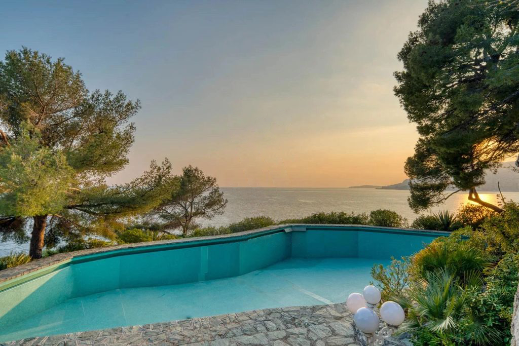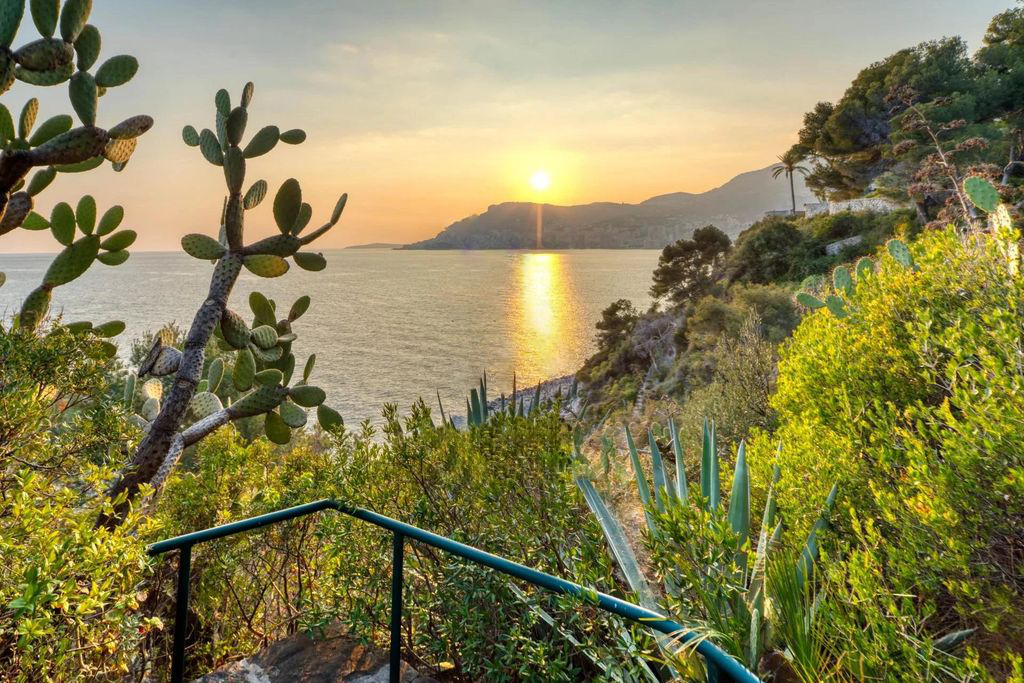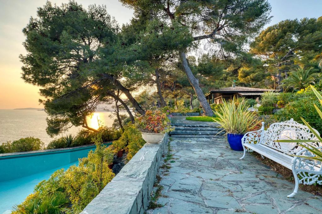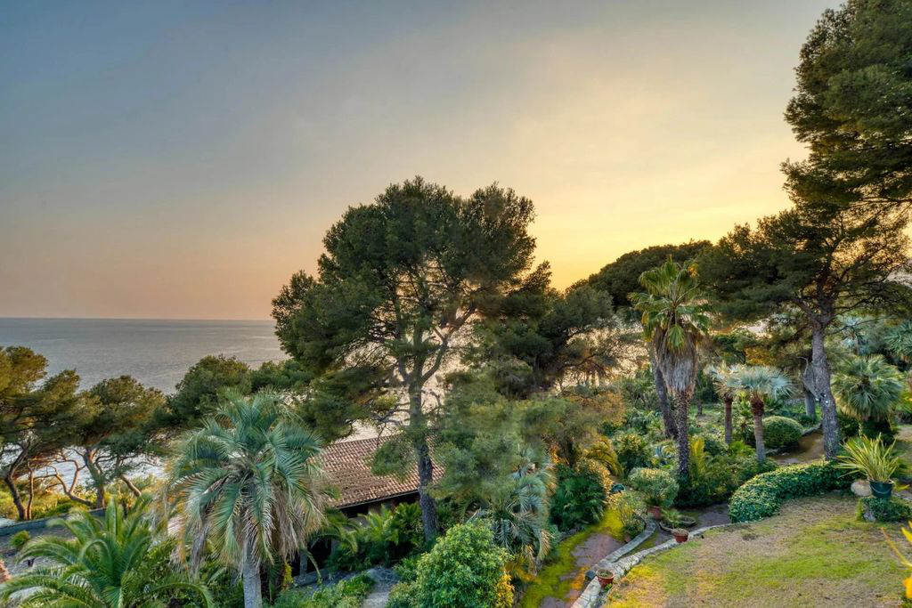 Propriété Cap Martin privée et sécurisée : au calme, maison exceptionnelle et rare exposée sud-ouest, d'environ 550 m2 avec terrasses, édifiée sur un terrain arboré de 13 800 m2 avec de nombreuses vues méditerranéennes, piscine et jardins descendant jusqu'à la mer.