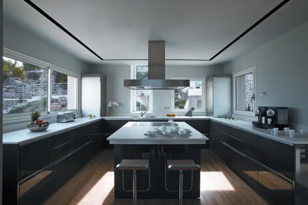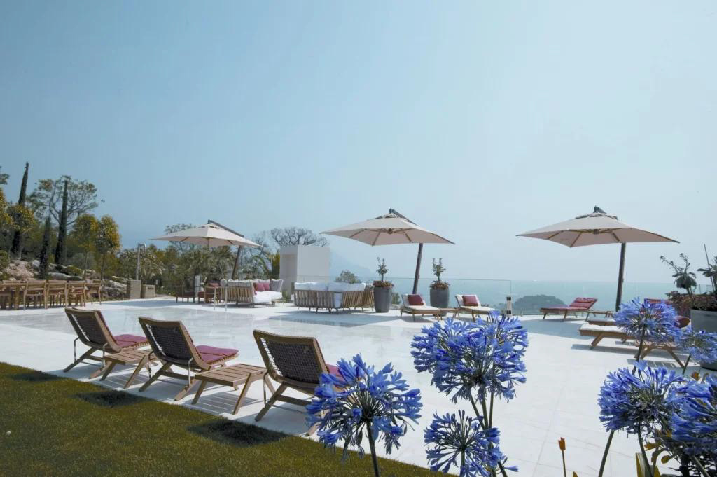 Les espaces repas et salon surélevés offrent une vue panoramique sur la mer à 180°. Cuisine Boffi entièrement équipée. Vous trouverez sur place un centre de spa doté d'un hammam, d'un sauna, d'une douche et d'une salle de massage.