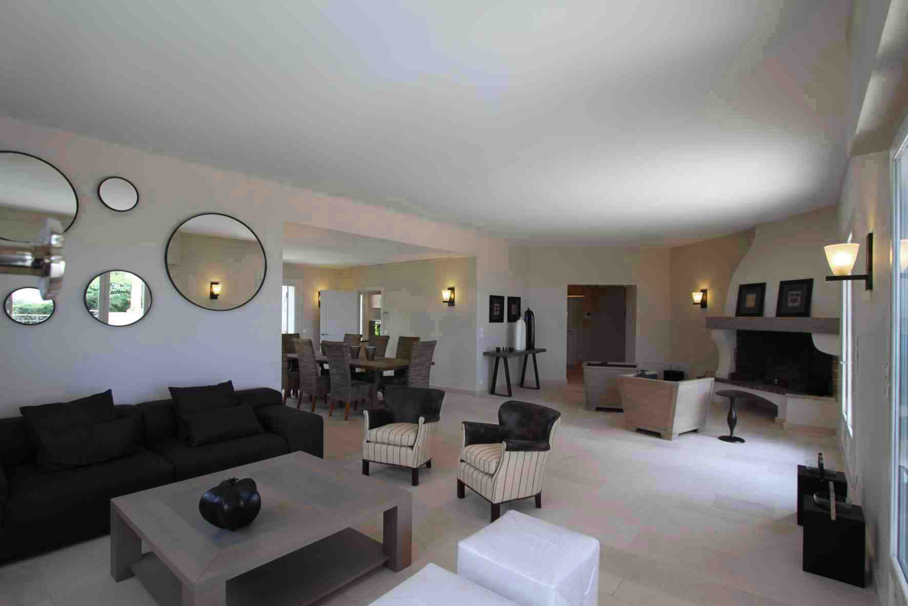 - Grand salon avec une cheminée et salle à manger avec accès a la terrasse