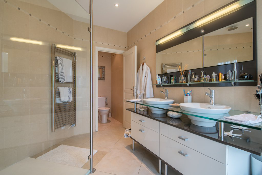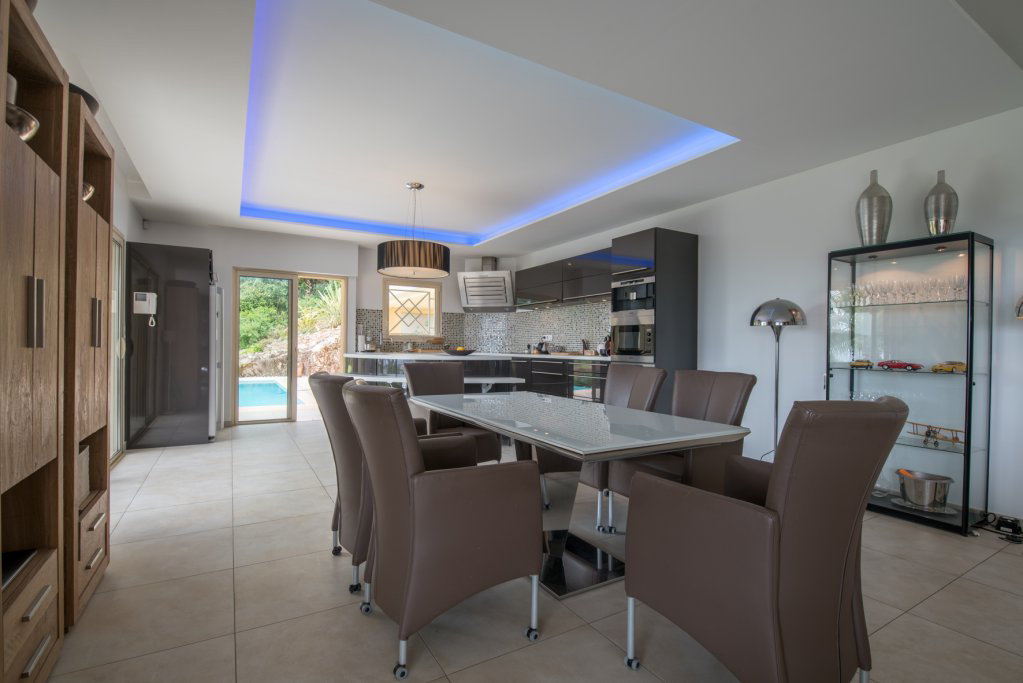De construction récente, la villa développe une superficie habitable d'environ 210 m2, avec notamment 4 suites, à laquelle s'ajoute un grand sous-sol pouvant accueillir 6 voitures.