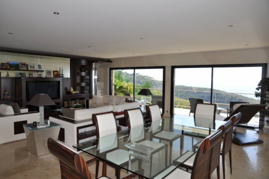 Belle villa de 350 m2 dans le style californien construite sur un terrain plat de 4000 m2. La villa est située sur un terrain clos et gardé a quelques minutes en voiture de la ville historique d'Eze et Monaco. Une vue panoramique sur la mer.
