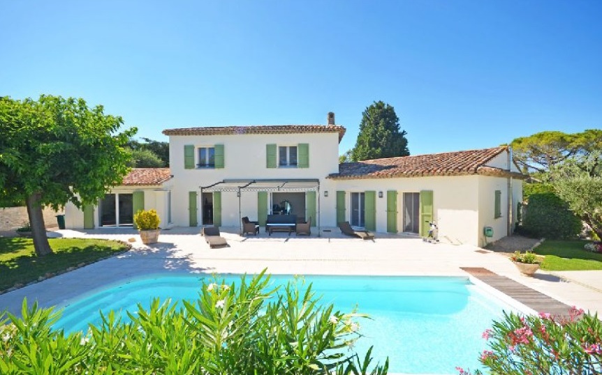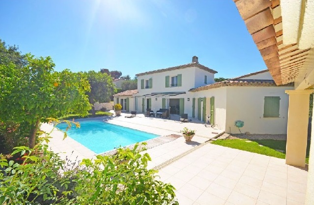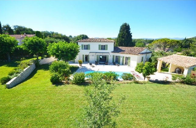 La villa sur la Côte d'Azur à Mougins est situé dans le prestigieux quartier résidentiel calme près du vieux village et face au sud. Le territoire dispose d'un jardin bien entretenu, piscine, et une piscine couverte dans la maison.