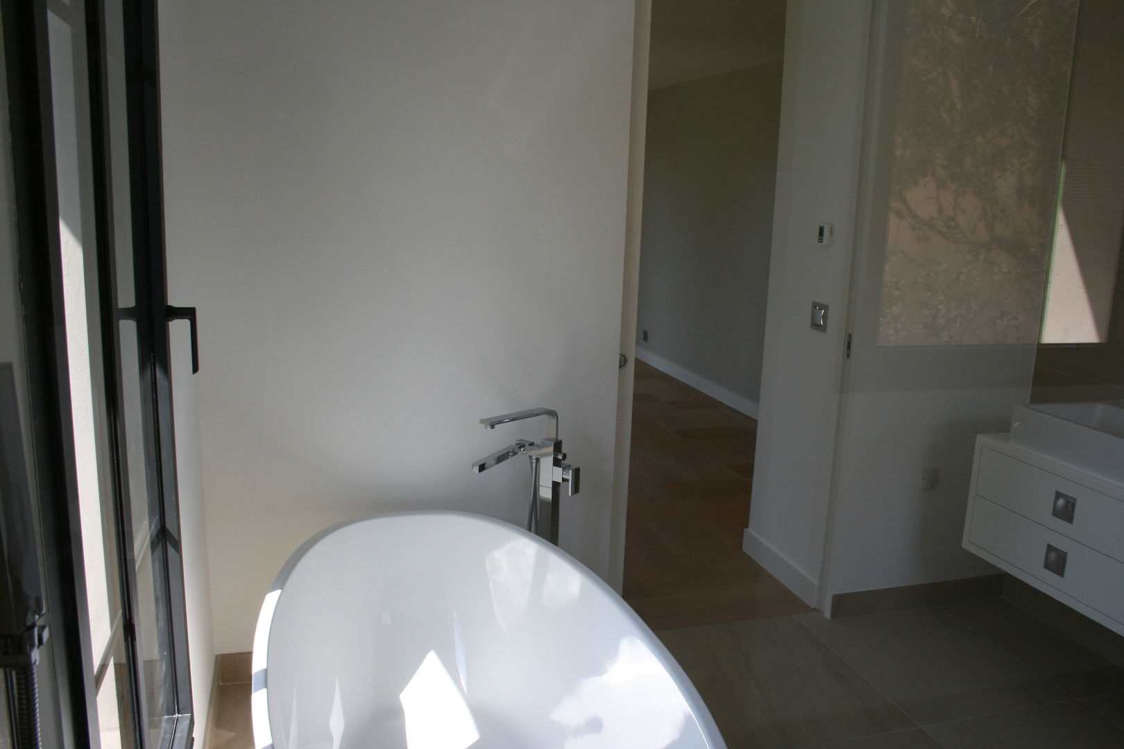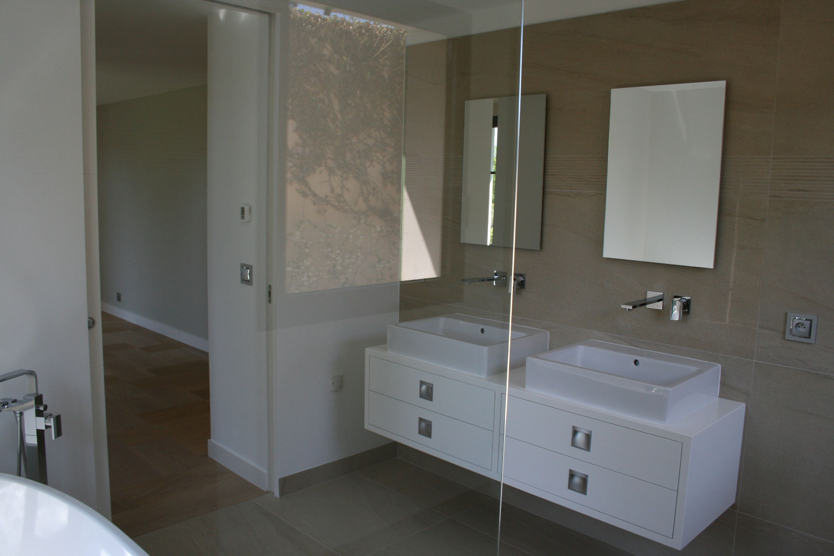 chambre de maître avec salle de bains privative avec douche et baignoire, 2 petit dressing, placards, deux autres chambres, chacune avec salle de bains privative avec douche. Studio / bureau indépendant.