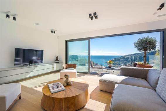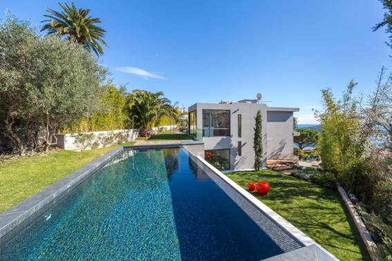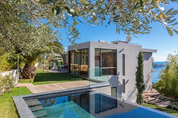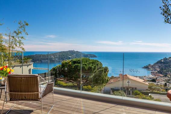 Belle villa moderne dans un quartier résidentiel de Villefranche-sur-Mer avec une belle vue sur la mer et le Cap Ferrat.